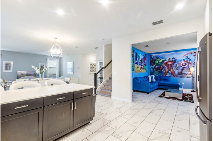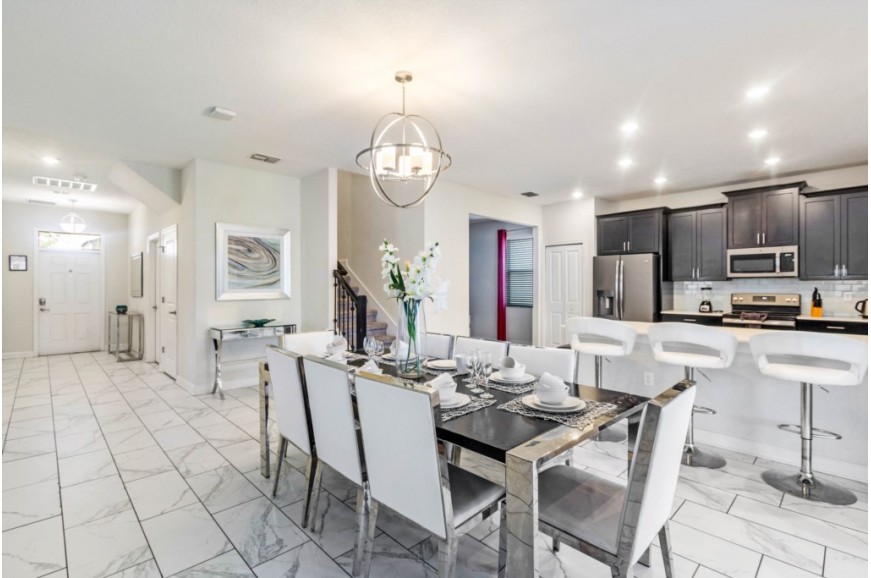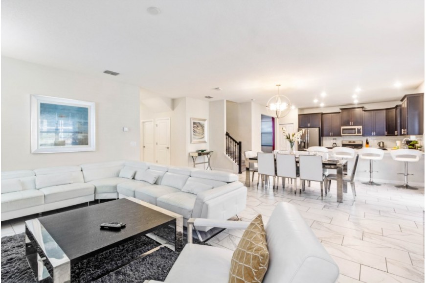 The Retreat at Champions Gate - Kissimmee, Florida is a new upscale gated resort community located just 12 miles from Walt Disney World. This luxury home sits nestled just outside of Orlando, Florida and will quickly become one of the most desired locations in the Orlando area. During your stay, you will enjoy this well-appointed home that has been designed and decorated to provide you and your family an abundance of luxury amenities and leaves you well equipped to vacation with all the usual items you would expect to find at home. The Retreat at Champions Gate is only a 30-minute drive from the Orlando International Airport and is situated central to all of Orlando’s famous attractions. This spacious 6-bedroom holiday villa can comfortably accommodate a larger family or group of up to 12 people.