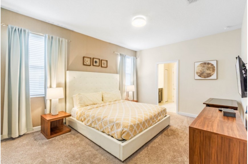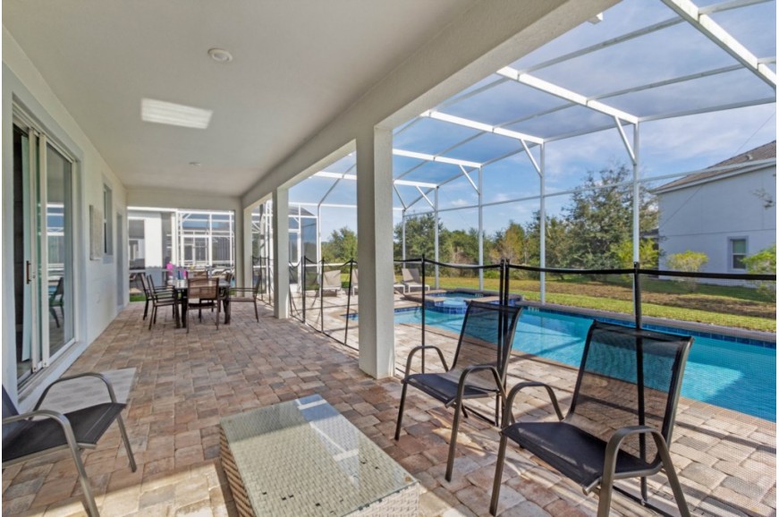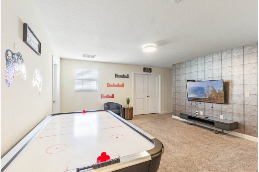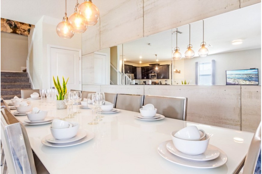 The Retreat at Champions Gate - Kissimmee, Florida is a new upscale gated resort community located just 12 miles from Walt Disney World. This luxury home sits nestled just outside of Orlando, Florida, and will quickly become one of the most desired locations in the Orlando area. During your stay, you will enjoy this well-appointed home that has been designed and decorated to provide you and your family with an abundance of luxury amenities and leaves you well-equipped to vacation with all the usual items you would expect to find at home. The Retreat at Champions Gate is only a 30-minute drive from the Orlando International Airport and is situated central to all of Orlando’s famous attractions. This spacious 8-bedroom holiday villa can comfortably accommodate a larger family or group of up to 16 people.