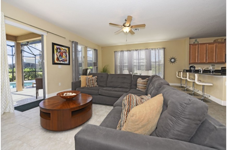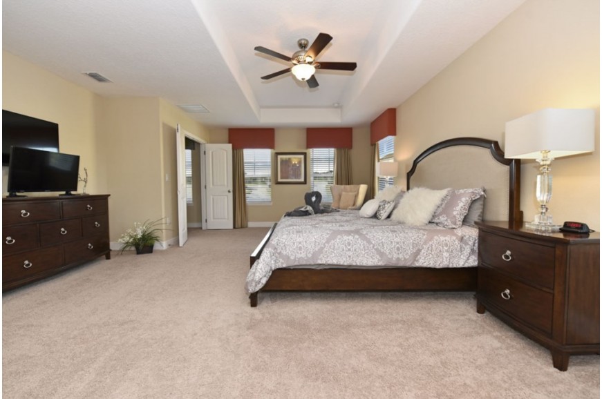 Solterra Resort - Davenport, Florida is a paradise located only 15 minutes from the area's main attraction... Walt Disney World. This luxury resort sits nestled just outside of Orlando, Florida and has quickly become one of the most desired resorts in the Orlando area. During your stay, you will enjoy this well-appointed home that has been designed and decorated to provide you and your family an abundance of luxury amenities and leaves you well equipped to vacation with all the usual items you would expect to find at home. Solterra Resort is only a 30-minute drive from the Orlando International Airport and is situated central to all of Orlando’s famous attractions. The resorts amenities include a 6700 square foot clubhouse, swimming pool, spa, fitness center, business center with Internet, volleyball, tennis, children's playground, and picnic area. This spacious 6 bedroom holiday villa can comfortably accommodate a larger family or group of up to 12 people.