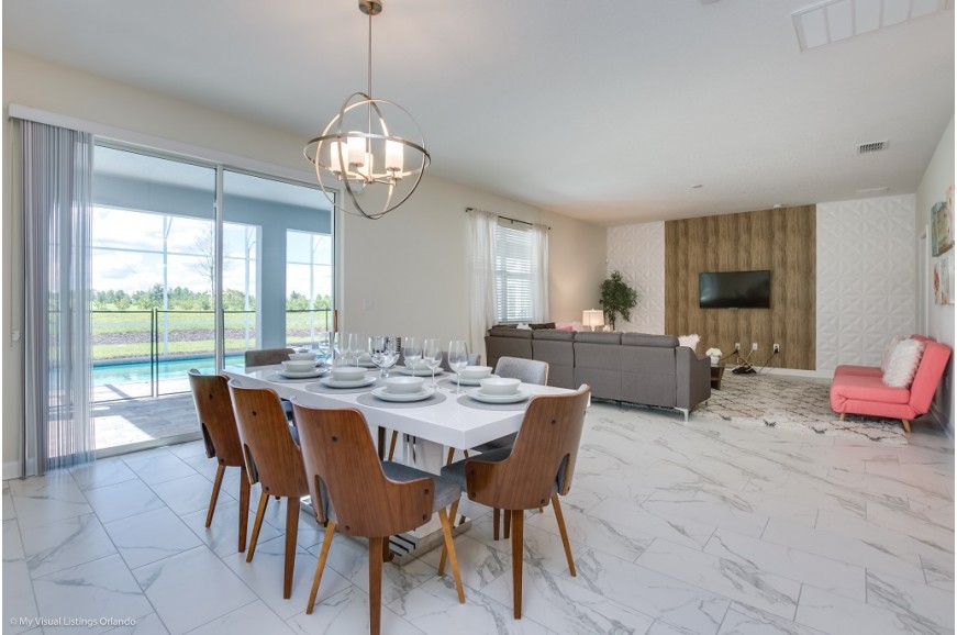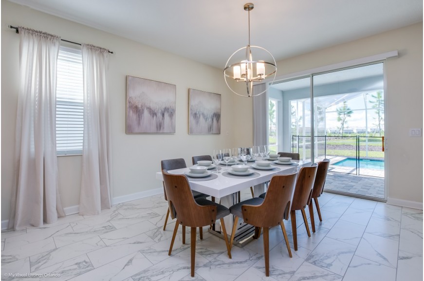 The Retreat at Champions Gate - Kissimmee, Florida is a new upscale gated resort community located just 12 miles from Walt Disney World. This luxury home sits nestled just outside of Orlando, Florida, and will quickly become one of the most desired locations in the Orlando area. During your stay, you will enjoy this well-appointed home that has been designed and decorated to provide you and your family with an abundance of luxury amenities and leaves you well-equipped to vacation with all the usual items you would expect to find at home. The Retreat at Champions Gate is only a 30-minute drive from the Orlando International Airport and is situated central to all of Orlando’s famous attractions. This spacious 5-bedroom holiday villa can comfortably accommodate a larger family or group of up to 10 people.