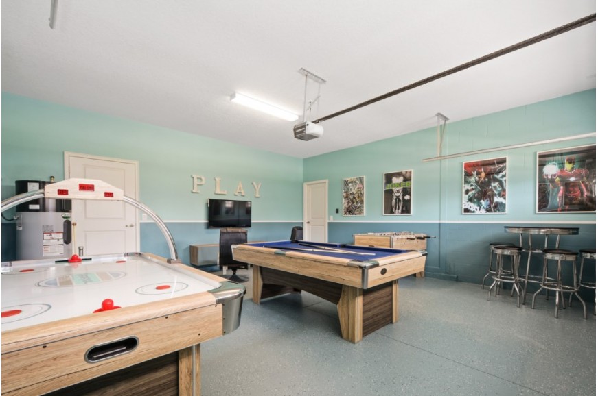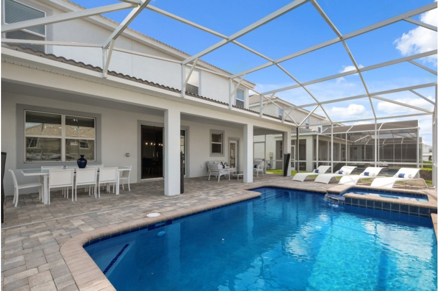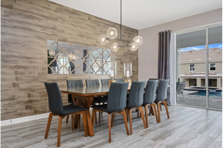 The Retreat at Champions Gate - Kissimmee, Florida is a new upscale gated resort community located just 12 miles from Walt Disney World. This luxury home sits nestled just outside of Orlando, Florida, and will quickly become one of the most desired locations in the Orlando area. During your stay, you will enjoy this well-appointed home that has been designed and decorated to provide you and your family with an abundance of luxury amenities and leaves you well-equipped to vacation with all the usual items you would expect to find at home. The Retreat at Champions Gate is only a 30-minute drive from the Orlando International Airport and is situated central to all of Orlando’s famous attractions. This spacious 8-bedroom holiday villa can comfortably accommodate a larger family or group of up to 16 people.