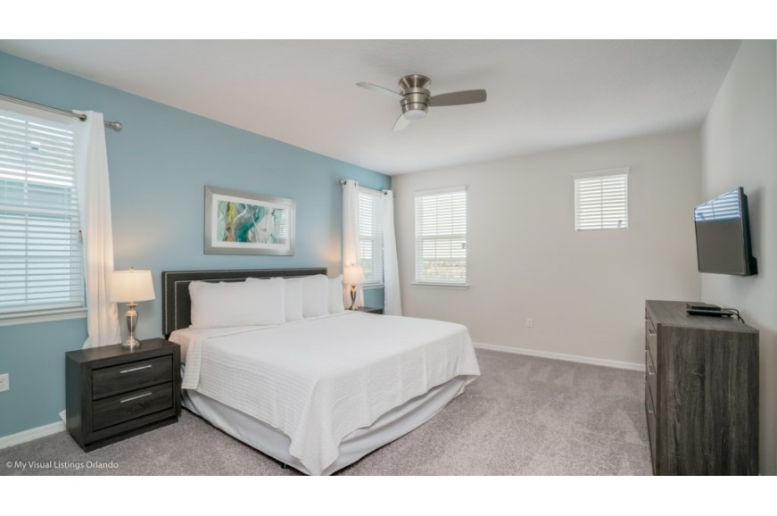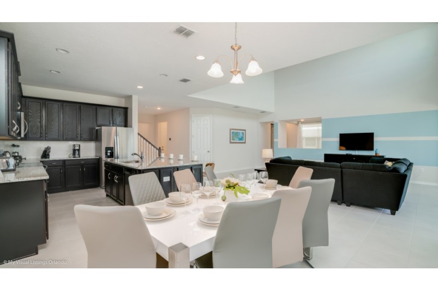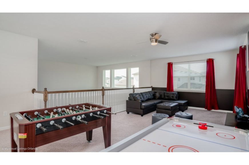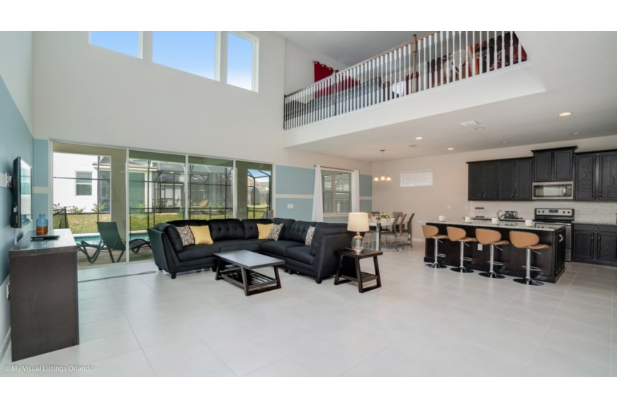 Solara Resort - Kissimmee, Florida is an upscale community currently under development just 7 miles from Walt Disney World. This gated resort community sits nestled just outside of Orlando, Florida. During your stay, you will enjoy this well-appointed home that has been designed and decorated to provide you and your family with an abundance of luxury amenities and leaves you well-equipped to vacation with all the usual items you would expect to find at home. The resort is only a 30-minute drive from the Orlando International Airport and is situated central to all of Orlando’s famous attractions. The resort boasts an expansive clubhouse that includes a grand pool, complete with a surfing simulator, cabanas, a pool bar, a children's playground, a sand volleyball court, a basketball court, and a soccer field. Inside the clubhouse sits the lounge, bar & grill, fitness center, business center, and sundries store. This spacious 6-bedroom holiday villa can comfortably accommodate a larger family or group of up to 12 people.