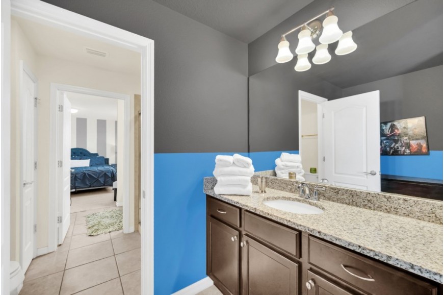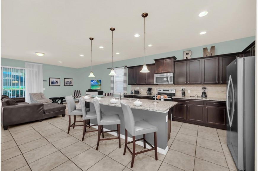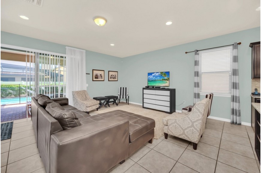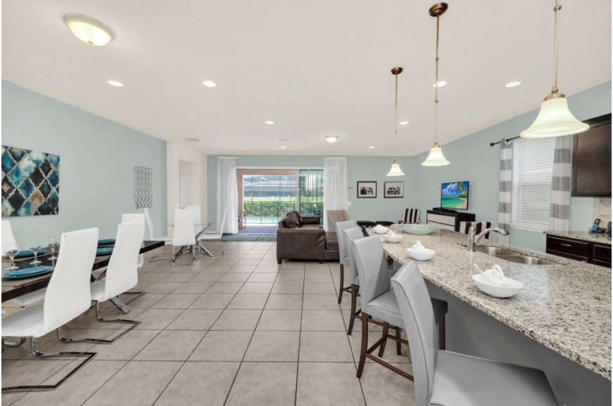 Windsor at Westside - Kissimmee, Florida is an upscale gated community located just 10 minutes from Walt Disney World. This luxury home sits nestled just outside of Orlando, Florida and has quickly become one of the most desired locations in the Orlando area. During your stay, you will enjoy this well-appointed home that has been designed and decorated to provide you and your family an abundance of luxury amenities and leaves you well equipped to vacation with all the usual items you would expect to find at home. Windsor at Westside is only a 30-minute drive from the Orlando International Airport and is situated central to all of Orlando’s famous attractions. This spacious 8 bedroom holiday villa can comfortably accommodate a larger family or group of up to 16 people.