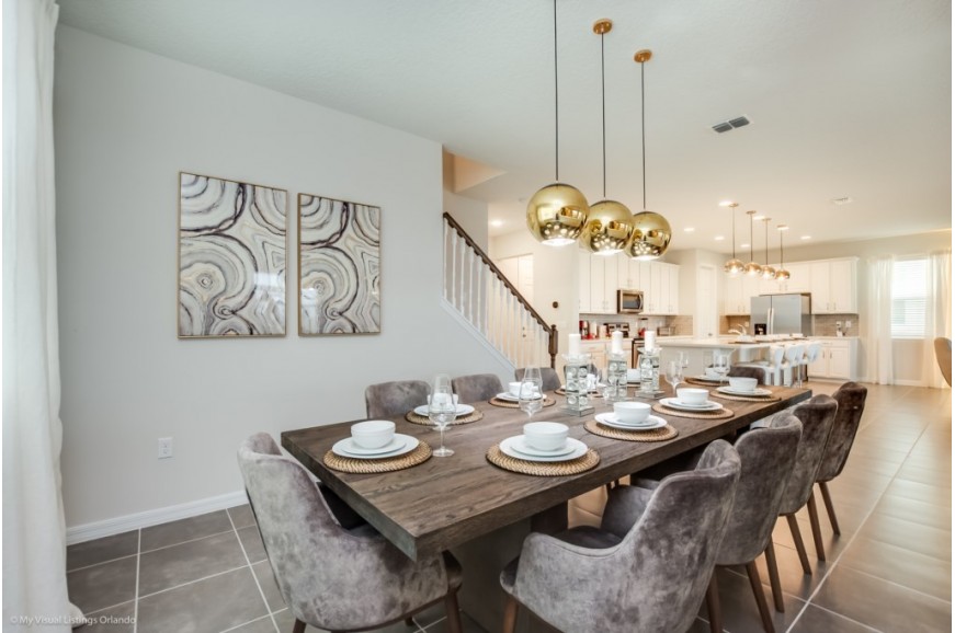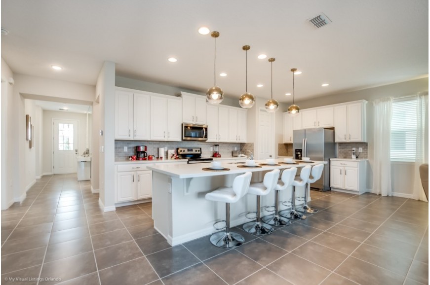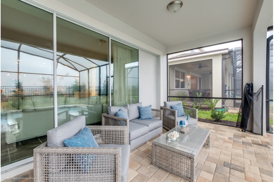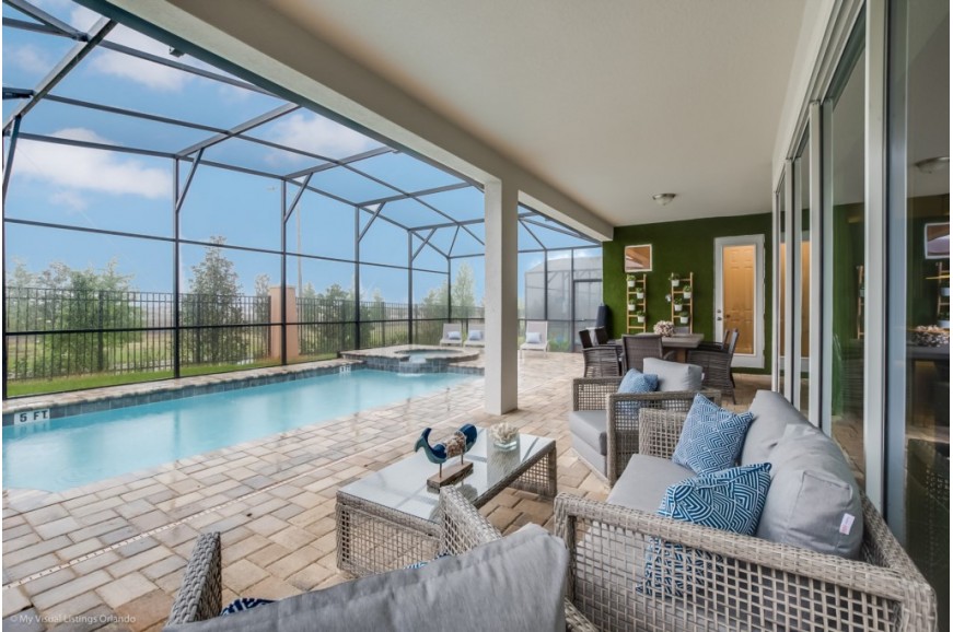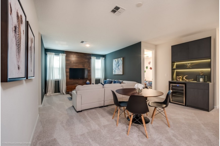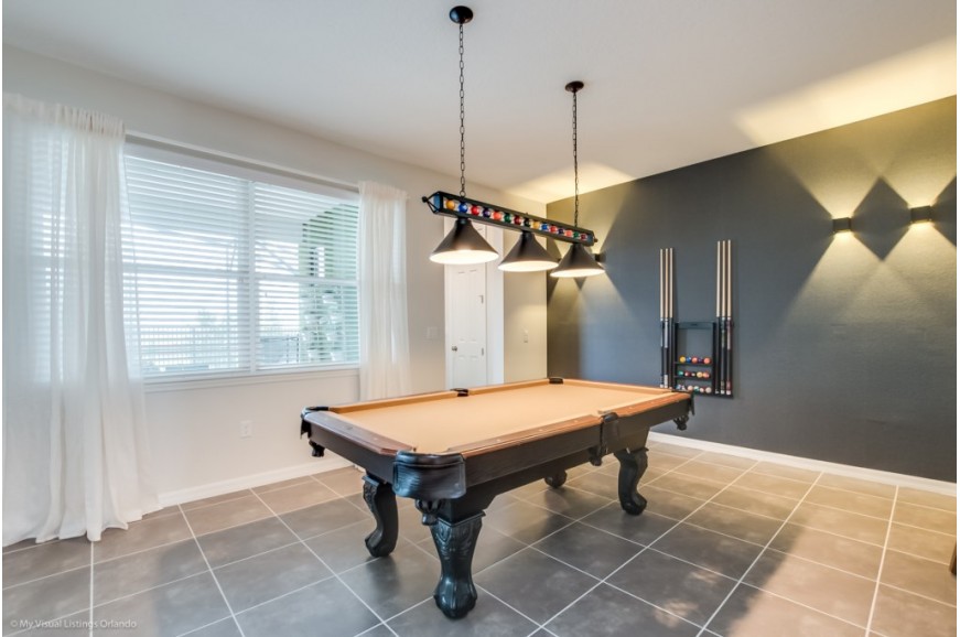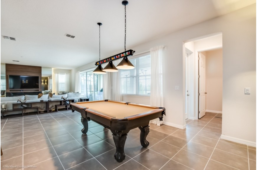 Solara Resort - Kissimmee, Florida is an upscale community currently under development just 7 miles from Walt Disney World. This gated resort community sits nestled just outside of Orlando, Florida. During your stay, you will enjoy this well-appointed home that has been designed and decorated to provide you and your family an abundance of luxury amenities and leave you well equipped to vacation with all the usual items you would expect to find at home. The resort is only a 30-minute drive from the Orlando International Airport and is situated central to all of Orlando’s famous attractions. The resort boasts an expansive clubhouse which includes a grand pool, complete with a surfing simulator, cabanas, pool bar, children's playground, sand volleyball court, basketball court, and soccer field. Inside the clubhouse sits the lounge, bar & grill, fitness center, business center, and sundries store. This spacious 9 bedroom holiday villa can comfortably accommodate a larger family or group of up to 18 people.