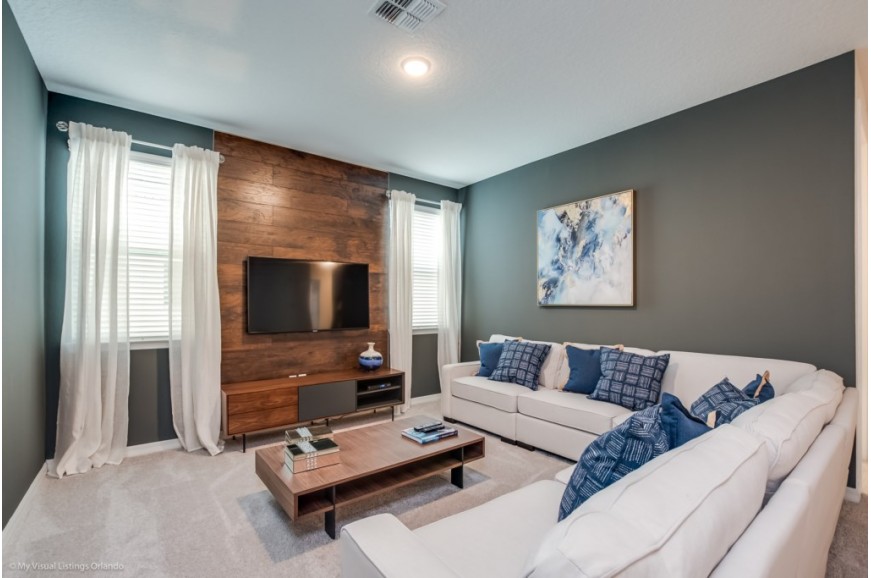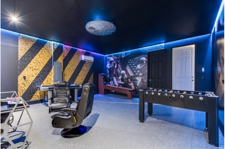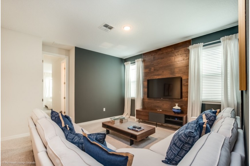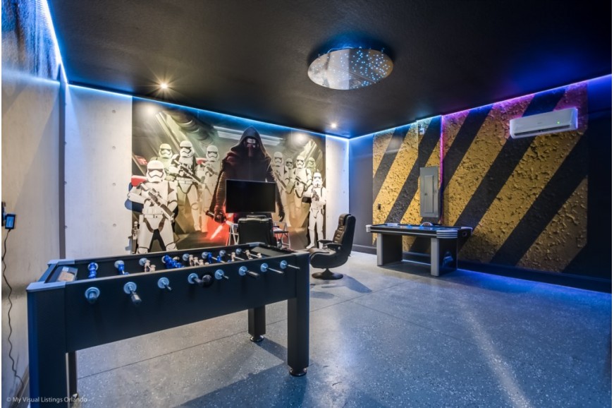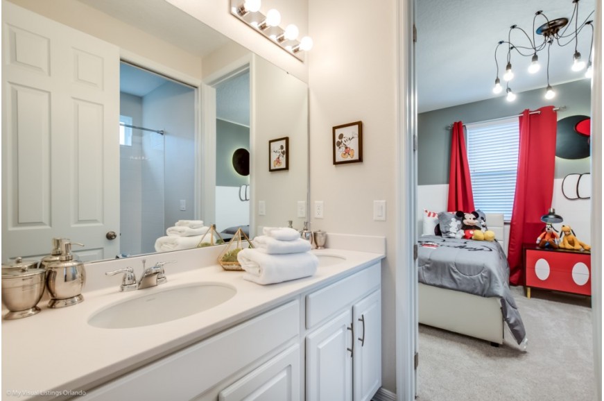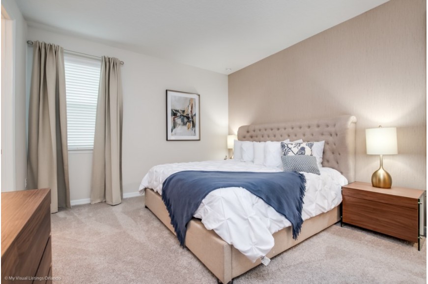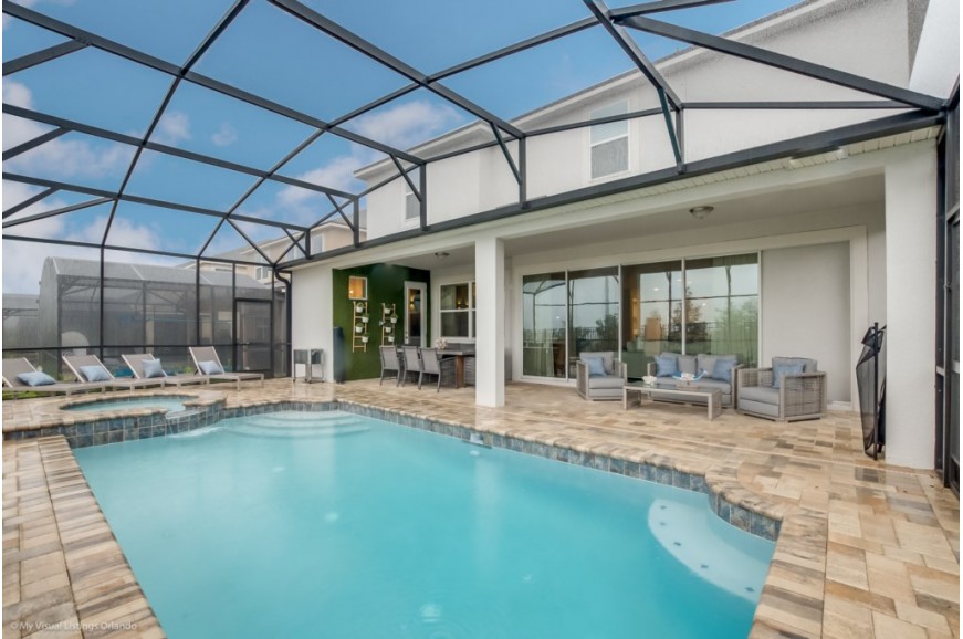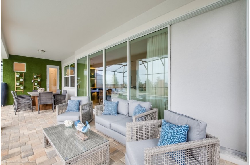 Solara Resort - Kissimmee, Florida is an upscale community currently under development just 7 miles from Walt Disney World. This gated resort community sits nestled just outside of Orlando, Florida. During your stay, you will enjoy this well-appointed home that has been designed and decorated to provide you and your family an abundance of luxury amenities and leave you well equipped to vacation with all the usual items you would expect to find at home. The resort is only a 30-minute drive from the Orlando International Airport and is situated central to all of Orlando’s famous attractions. The resort boasts an expansive clubhouse which includes a grand pool, complete with a surfing simulator, cabanas, pool bar, children's playground, sand volleyball court, basketball court, and soccer field. Inside the clubhouse sits the lounge, bar & grill, fitness center, business center, and sundries store. This spacious 9 bedroom holiday villa can comfortably accommodate a larger family or group of up to 18 people.