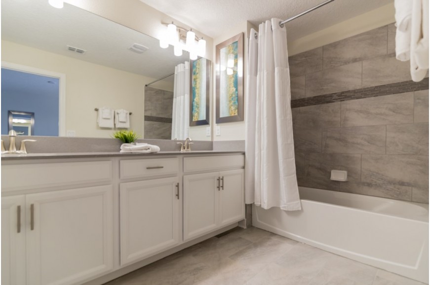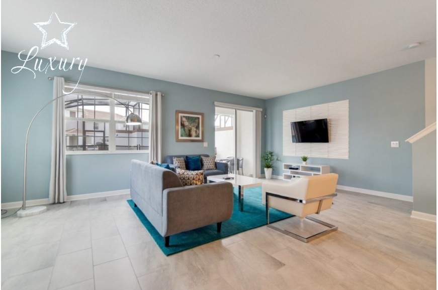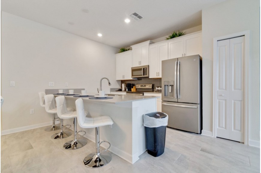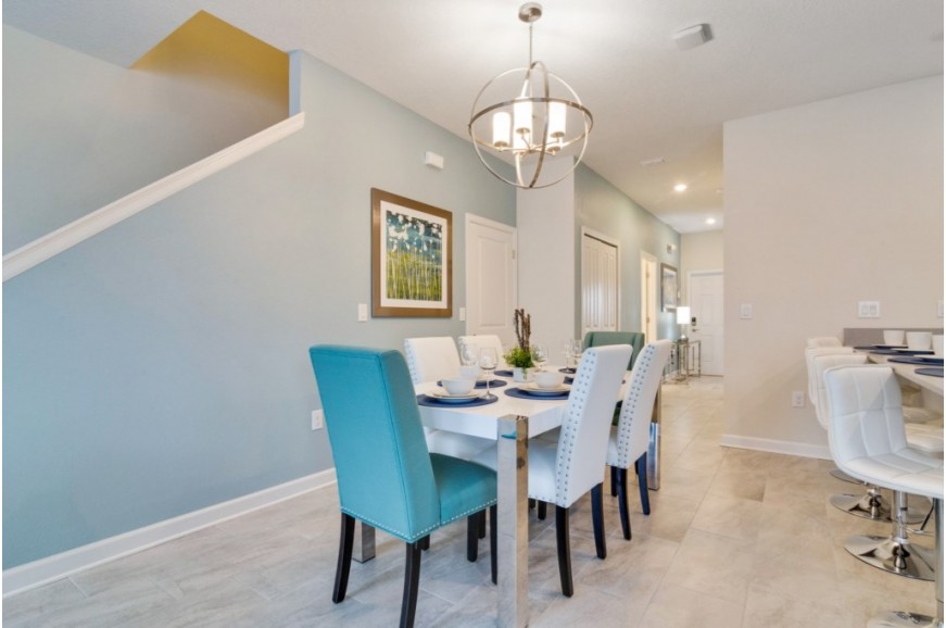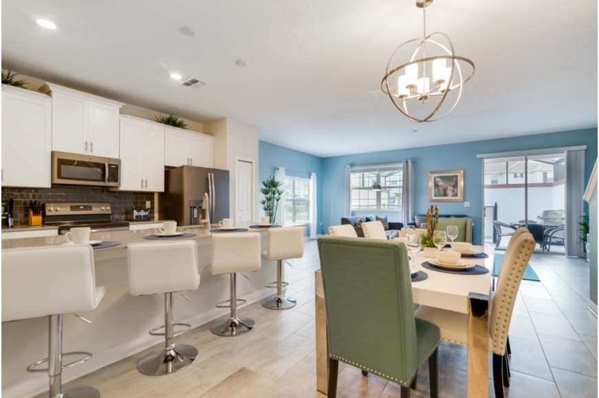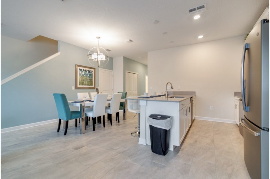 The Retreat at Champions Gate - Kissimmee, Florida is a new upscale gated resort community located just 12 miles from Walt Disney World. This luxury townhome sits nestled just outside of Orlando, Florida and will quickly become one of the most desired locations in the Orlando area. During your stay, you will enjoy this well-appointed home that has been designed and decorated to provide you and your family an abundance of luxury amenities and leaves you well equipped to vacation with all the usual items you would expect to find at home. The Retreat at Champions Gate is only a 30-minute drive from the Orlando International Airport and is situated central to all of Orlando’s famous attractions. This spacious 5 bedroom town home can comfortably accommodate a larger family or group of up to 10 people.