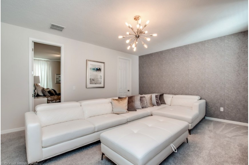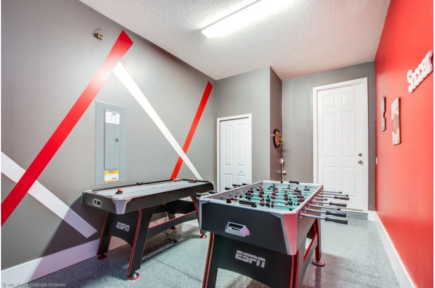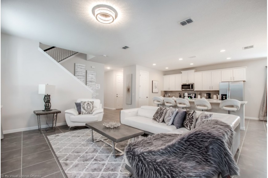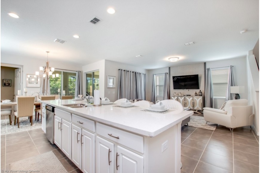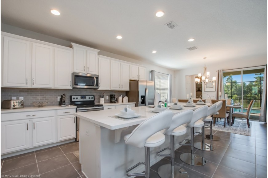 Solara Resort - Kissimmee, Florida is an upscale community currently under development just 7 miles from Walt Disney World. This gated resort community sits nestled just outside of Orlando, Florida. During your stay, you will enjoy this well-appointed home that has been designed and decorated to provide you and your family an abundance of luxury amenities and leaves you well equipped to vacation with all the usual items you would expect to find at home. The resort is only a 30-minute drive from the Orlando International Airport and is situated central to all of Orlando’s famous attractions. The resort boasts an expansive clubhouse which includes a grand pool, complete with surfing simulator, cabanas, pool bar, children's playground, sand volleyball court, basketball court, and soccer field. Inside the clubhouse sits the lounge, bar & grill, fitness center, business center, and sundries store. This spacious 6 bedroom holiday villa can comfortably accommodate a larger family or group of up to 12 people.