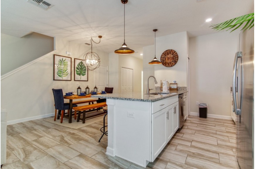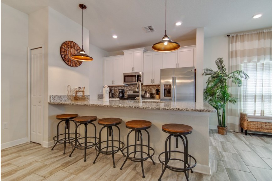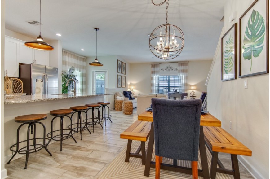 The Retreat at Champions Gate - Kissimmee, Florida is a new upscale gated resort community located just 12 miles from Walt Disney World. This luxury townhome sits nestled just outside of Orlando, Florida and will quickly become one of the most desired locations in the Orlando area. During your stay, you will enjoy this well-appointed home that has been designed and decorated to provide you and your family an abundance of luxury amenities and leaves you well equipped to vacation with all the usual items you would expect to find at home. The Retreat at Champions Gate is only a 30-minute drive from the Orlando International Airport and is situated central to all of Orlando’s famous attractions. This spacious 4 bedroom holiday town home can comfortably accommodate a larger family or group of up to 8 people.
