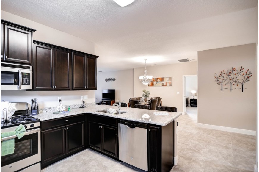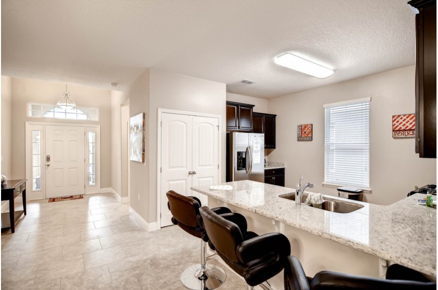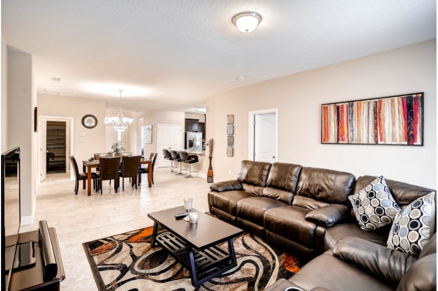 Solterra Resort - Davenport, Florida is a paradise located only 15 minutes from the area's main attraction... Walt Disney World. This luxury resort sits nestled just outside of Orlando, Florida and has quickly become one of the most desired resorts in the Orlando area. During your stay, you will enjoy this well-appointed home that has been designed and decorated to provide you and your family an abundance of luxury amenities and leaves you well equipped to vacation with all the usual items you would expect to find at home. Solterra Resort is only a 30-minute drive from the Orlando International Airport and is situated central to all if Orlando’s famous attractions. The resorts amenities include 6700 square foot clubhouse, swimming pool, spa, fitness center, business center with Internet, volleyball, tennis, children's playground and picnic area This spacious 5 bedroom pool home can comfortably accommodate a larger family or group of up to 10 people.