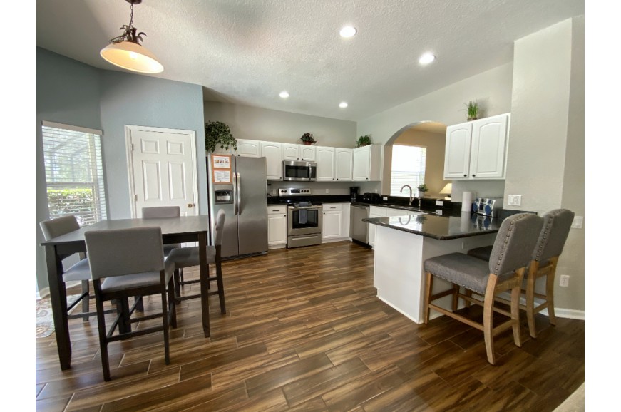 Windsor Hills - Kissimmee, Florida is an upscale gated community located just 2 miles from Walt Disney World. This luxury resort sits nestled just off Hwy 192 in Kissimmee, Florida, and is one of the most desired resorts in the Orlando area. During your stay, you will enjoy this well-appointed home that has been designed and decorated to provide you and your family with an abundance of luxury amenities and leaves you well-equipped to vacation with all the usual items you would expect to find at home. Windsor Hills Resort is only a 25-minute drive from the Orlando International Airport and is situated central to all of Orlando’s famous attractions. The resort amenities include a gated community, a water park with an Olympic-size swimming Pool, fountains, waterslides, a spa, a separate toddler pool, tennis courts, volleyball, and a children’s park and clubhouse. The Clubhouse has pool tables, ping-pong tables, a video games area, a sundry shop, a fitness room with top-of-the-line fitness equipment, and a high-definition surround sound movie theater. There are other outdoor recreational activities all surrounding the double Olympic-size swimming pool creating a relaxing, playful atmosphere for the entire family! Windsor Hills has all the amenities of a five-star hotel or resort but with the comfort, convenience, and privacy of a private home. This spacious 6-bedroom holiday villa can comfortably accommodate a larger family or group of up to 12 people.