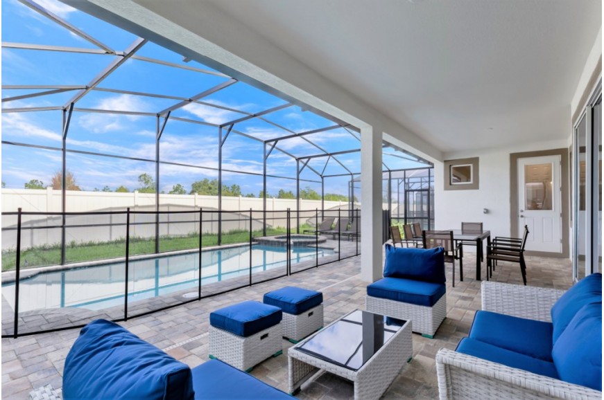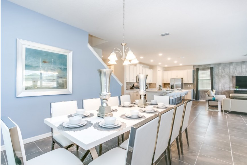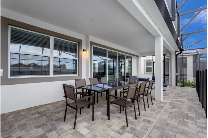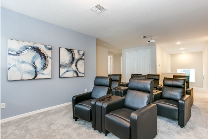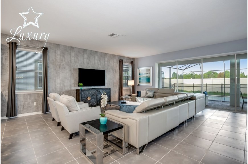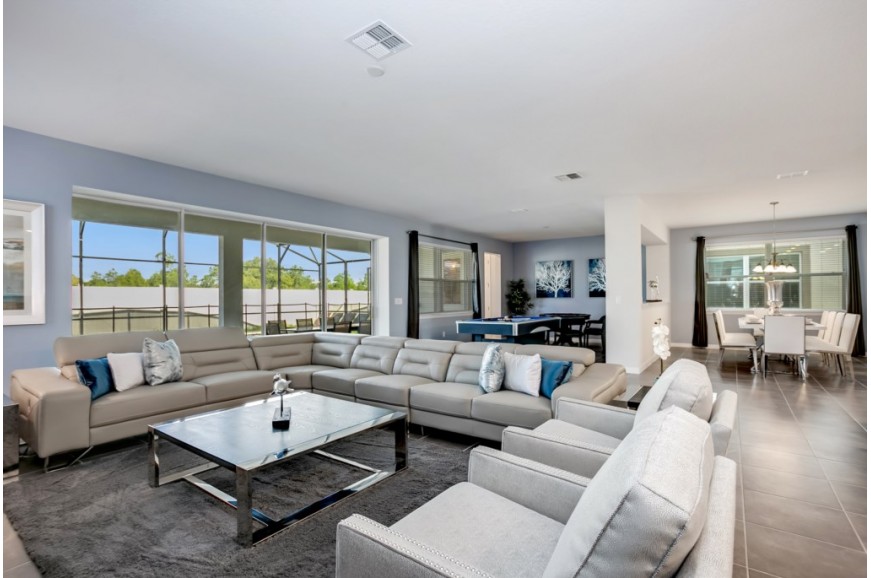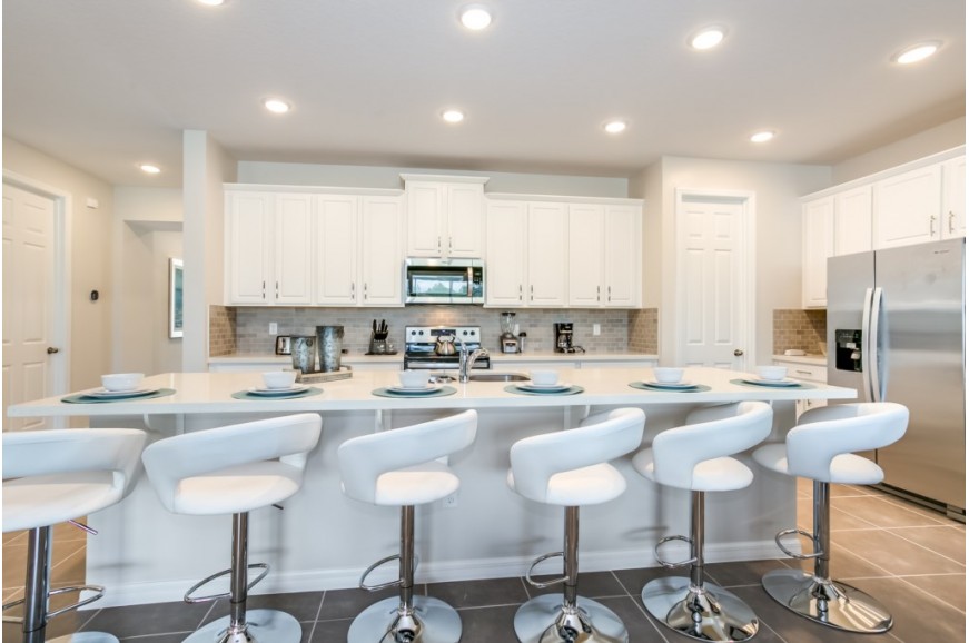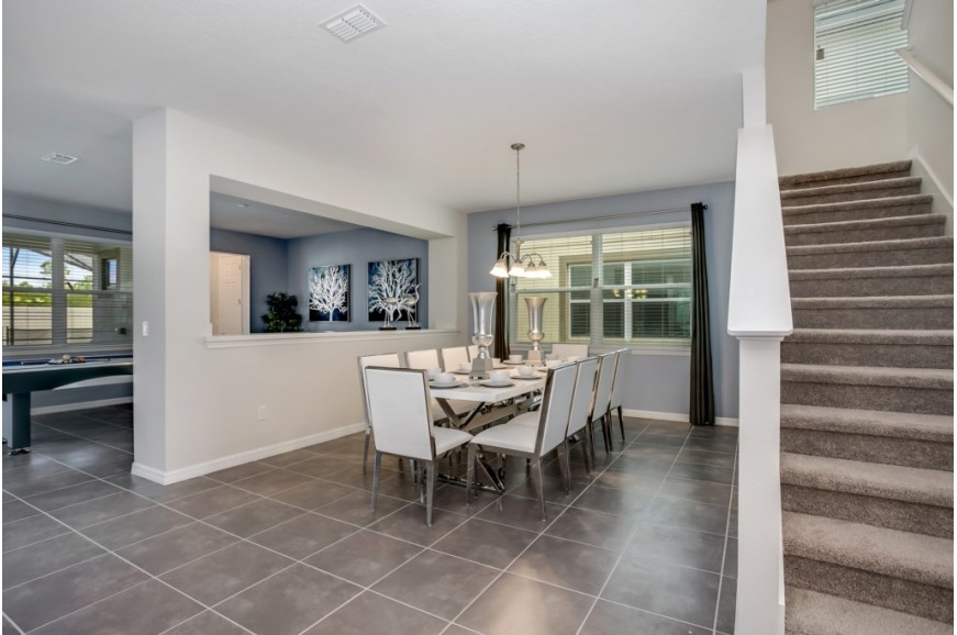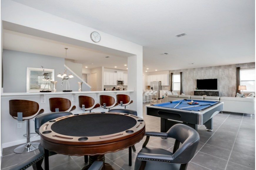 Solara Resort - Kissimmee, Florida is an upscale community currently under development just 7 miles from Walt Disney World. This gated resort community sits nestled just outside of Orlando, Florida. During your stay, you will enjoy this well-appointed home that has been designed and decorated to provide you and your family an abundance of luxury amenities and leaves you well equipped to vacation with all the usual items you would expect to find at home. The resort is only a 30-minute drive from the Orlando International Airport and is situated central to all of Orlando’s famous attractions. The resort boasts an expansive clubhouse which includes a grand pool, complete with surfing simulator, cabanas, pool bar, children's playground, sand volleyball court, basketball court, and soccer field. Inside the clubhouse sits the lounge, bar & grill, fitness center, business center, and sundries store. This spacious 9 bedroom holiday villa can comfortably accommodate a larger family or group of up to 18 people.