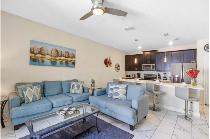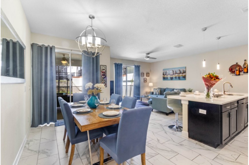 The Retreat at Champions Gate - Kissimmee, Florida is a new upscale gated resort community located just 12 miles from Walt Disney World. This luxury home sits nestled just outside of Orlando, Florida and will quickly become one of the most desired locations in the Orlando area. During your stay, you will enjoy this well-appointed home that has been designed and decorated to provide you and your family an abundance of luxury amenities and leaves you well equipped to vacation with all the usual items you would expect to find at home. The Retreat at Champions Gate is only a 30-minute drive from the Orlando International Airport and is situated central to all of Orlando’s famous attractions. This spacious 4 bedroom holiday villa can comfortably accommodate a larger family or group of up to 8 people.