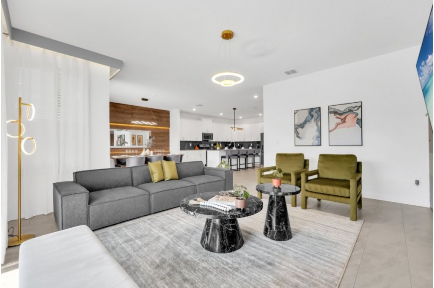 The Retreat at Champions Gate - Kissimmee, Florida is a new upscale gated resort community located just 12 miles from Walt Disney World. This luxury home sits nestled just outside of Orlando, Florida, and will quickly become one of the most desired locations in the Orlando area. During your stay, you will enjoy this well-appointed home that has been designed and decorated to provide you and your family an abundance of luxury amenities and leaves you well equipped to vacation with all the usual items you would expect to find at home. The Retreat at Champions Gate is only a 30-minute drive from the Orlando International Airport and is situated central to all of Orlando’s famous attractions. This spacious 6 bedroom holiday villa can comfortably accommodate a larger family or group of up to 16 people.