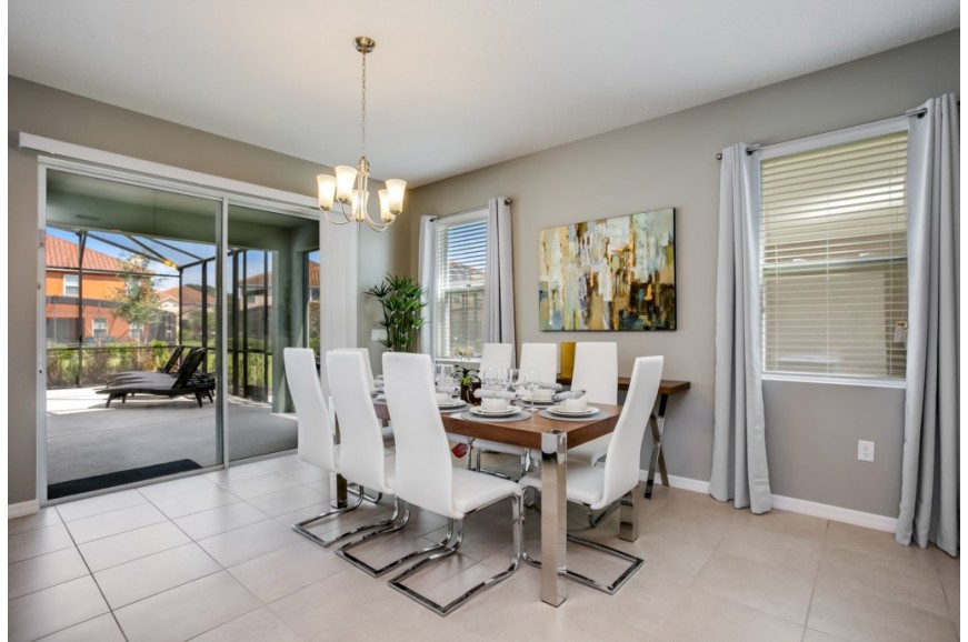 Solterra Resort - Davenport, Florida is a paradise located only 15 minutes from the area's main attraction... Walt Disney World. This luxury resort sits nestled just outside of Orlando, Florida and has quickly become one of the most desired resorts in the Orlando area. During your stay, you will enjoy this well-appointed home that has been designed and decorated to provide you and your family an abundance of luxury amenities and leaves you well equipped to vacation with all the usual items you would expect to find at home. Solterra Resort is only a 30-minute drive from the Orlando International Airport and is situated central to all of Orlando’s famous attractions. The resorts amenities include a 6700 square foot clubhouse, swimming pool, spa, fitness center, business center with Internet, volleyball, tennis, children's playground, and picnic area. This spacious 5 bedroom holiday villa can comfortably accommodate a larger family or group of up to 10 people.