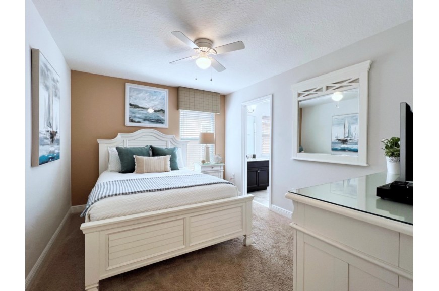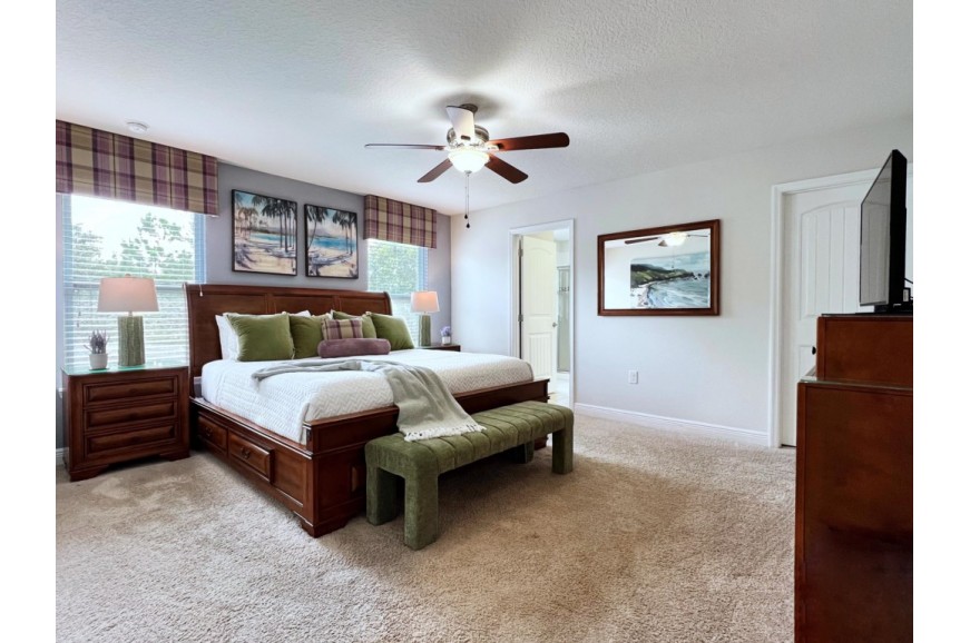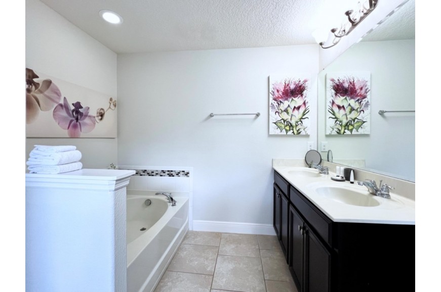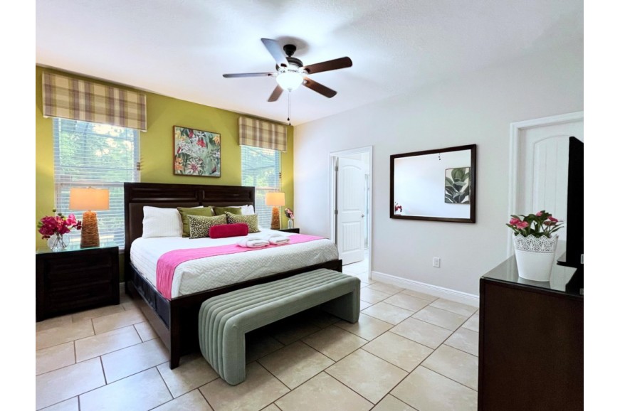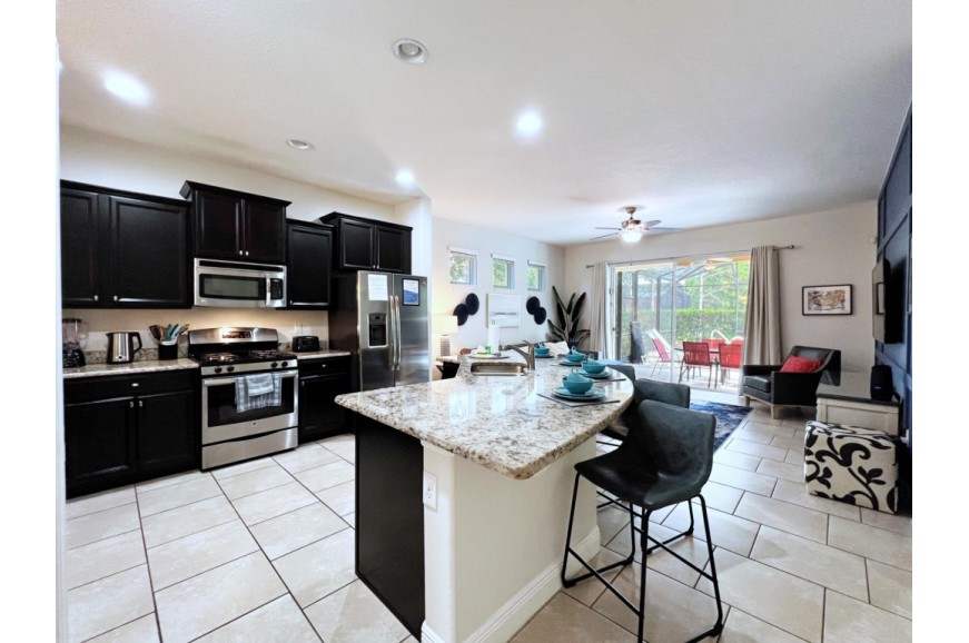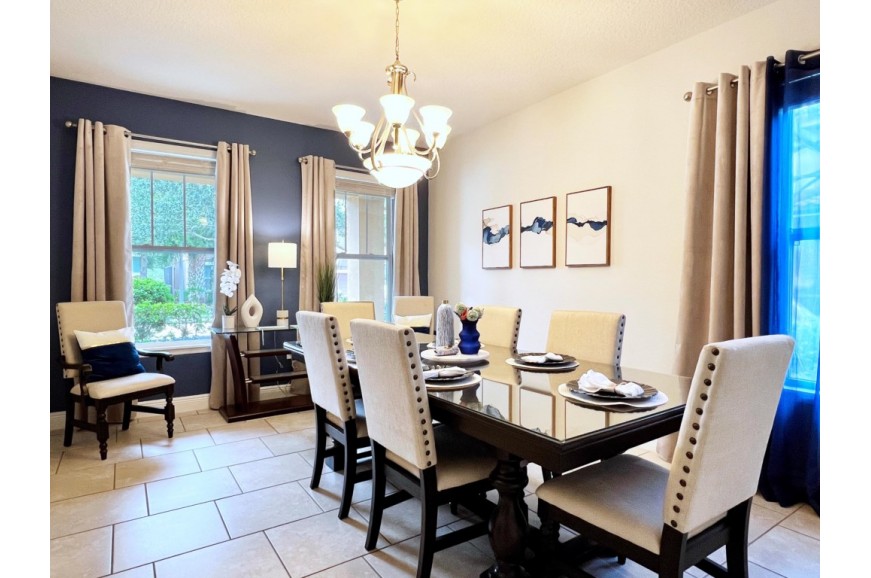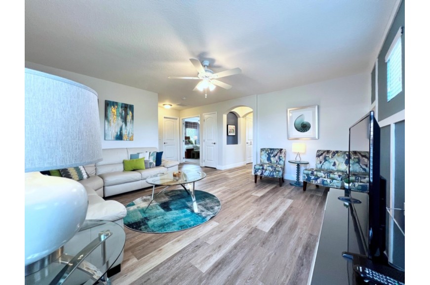 Solterra Resort - Davenport, Florida is a paradise located only 15 minutes from the area's main attraction... Walt Disney World. This luxury resort sits nestled just outside of Orlando, Florida and has quickly become one of the most desired resorts in the Orlando area. During your stay, you will enjoy this well-appointed home that has been designed and decorated to provide you and your family an abundance of luxury amenities and leaves you well equipped to vacation with all the usual items you would expect to find at home. Solterra Resort is only a 30-minute drive from the Orlando International Airport and is situated central to all if Orlando’s famous attractions. The resorts amenities include 6700 square foot clubhouse, swimming pool, spa, fitness center, business center with Internet, volleyball, Tennis, children's playground and picnic area. This spacious 5-bedroom holiday villa can comfortably accommodate a larger family or group of up to 10 people.