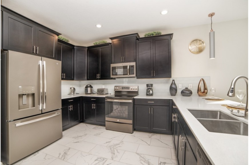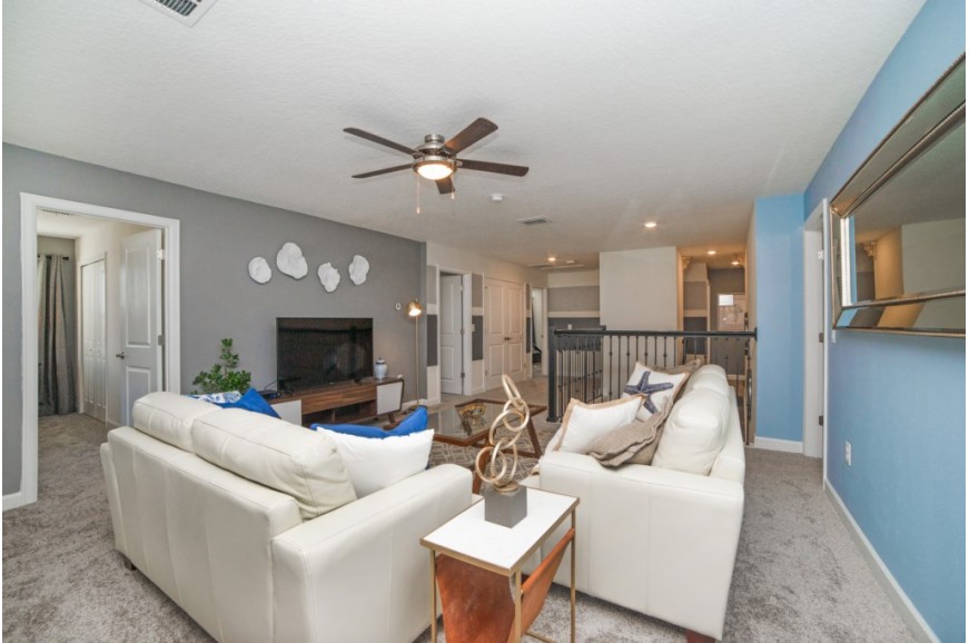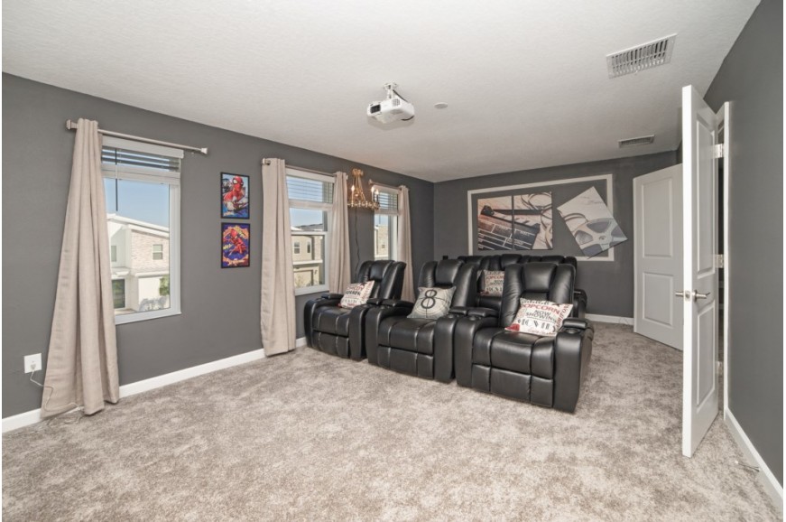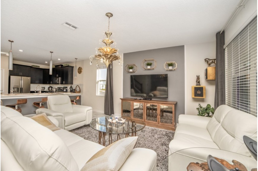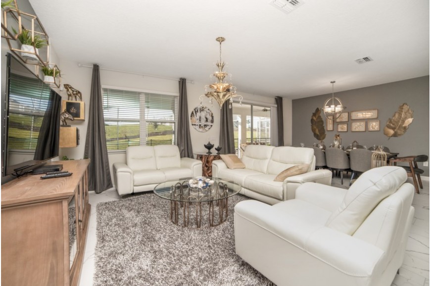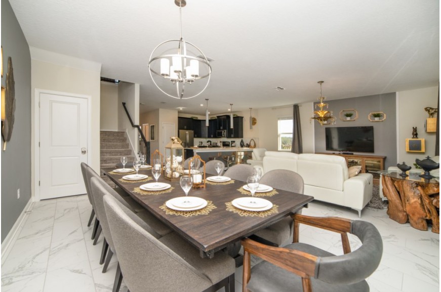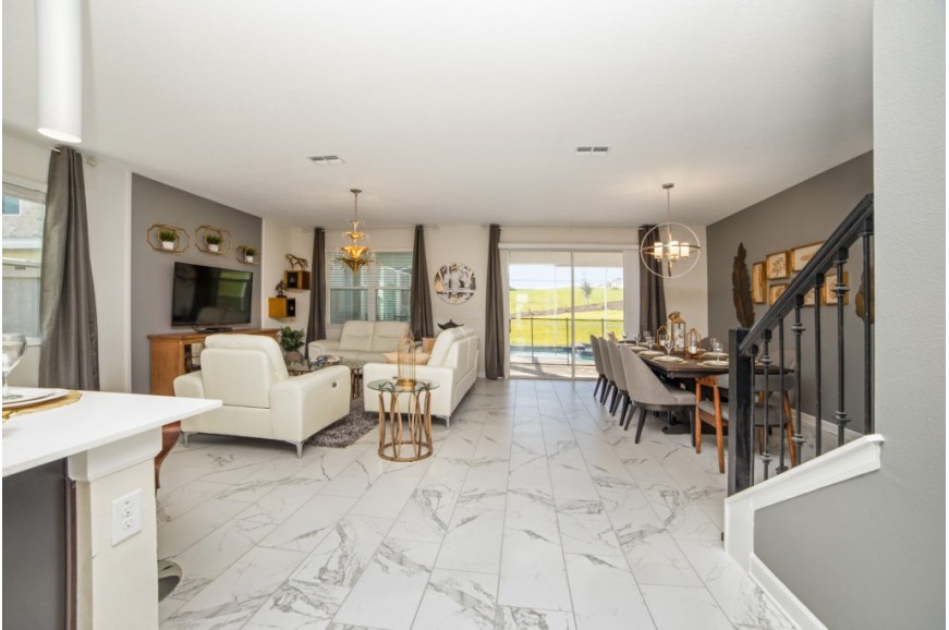 The Retreat at Champions Gate - Kissimmee, Florida is a new upscale gated resort community located just 12 miles from Walt Disney World. This luxury home sits nestled just outside of Orlando, Florida, and will quickly become one of the most desired locations in the Orlando area. During your stay, you will enjoy this well-appointed home that has been designed and decorated to provide you and your family with an abundance of luxury amenities and leaves you well-equipped to vacation with all the usual items you would expect to find at home. The Retreat at Champions Gate is only a 30-minute drive from the Orlando International Airport and is situated central to all of Orlando’s famous attractions. This spacious 8-bedroom holiday villa can comfortably accommodate a larger family or group of up to 16 people.