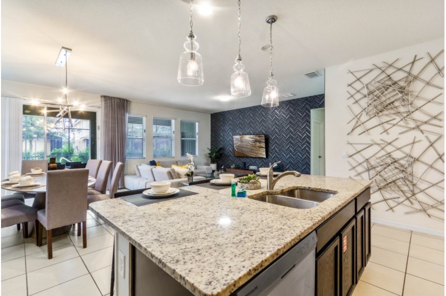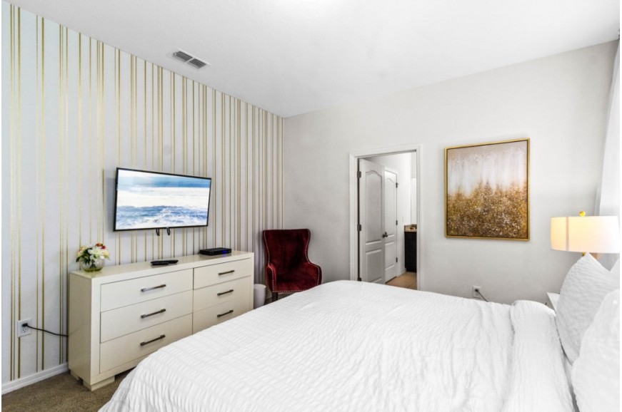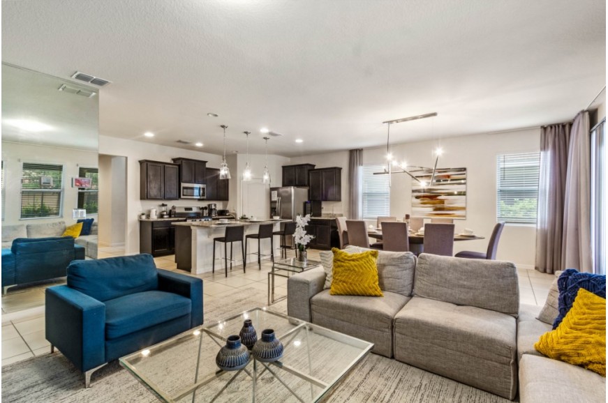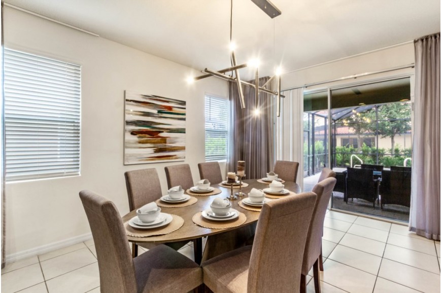 Solterra Resort - Davenport, Florida is a  paradise located only 15 minutes from the area's main attraction... Walt Disney World. This luxury resort sits nestled just outside of Orlando, Florida and has quickly become one of the most desired resorts in the Orlando area. During your stay, you will enjoy this well-appointed home that has been designed and decorated to provide you and your family an abundance of luxury amenities and leaves you well equipped to vacation with all the usual items you would expect to find at home. Solterra Resort is only a 30-minute drive from the Orlando International Airport and is situated central to all of Orlando’s famous attractions. The resorts amenities include a 6700 square foot clubhouse, swimming pool, spa, fitness center, business center with Internet,  volleyball, tennis, children's playground, and picnic area. This spacious 6 bedroom holiday villa can comfortably accommodate a larger family or group of up to 12 people.