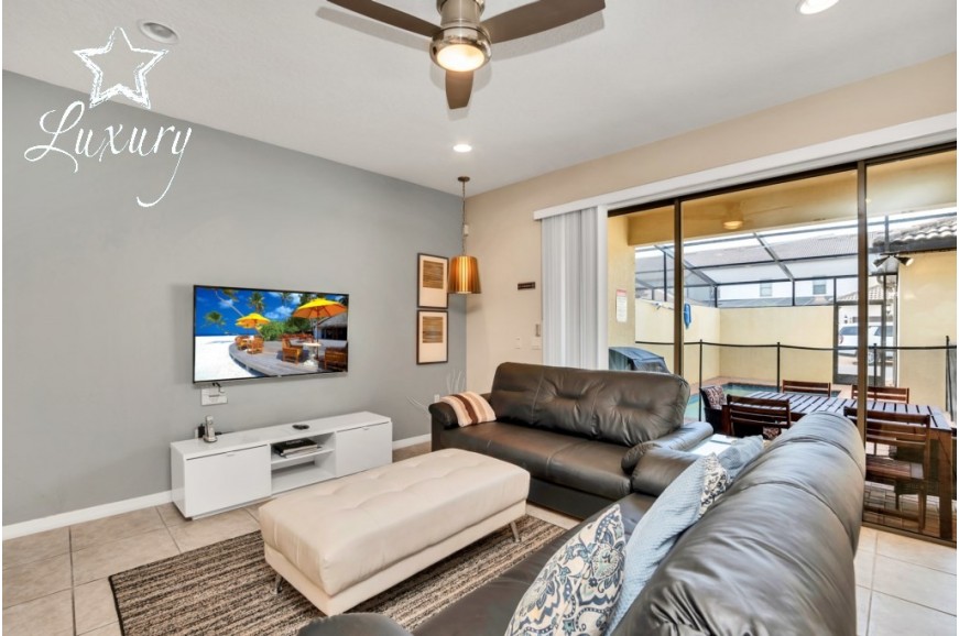 Windsor at Westside - Kissimmee, Florida is an upscale gated community located just 10 minutes from Walt Disney World. This luxury home sits nestled just outside of Orlando, Florida and has quickly become one of the most desired locations in the Orlando area. During your stay, you will enjoy this well-appointed home that has been designed and decorated to provide you and your family an abundance of luxury amenities and leaves you well equipped to vacation with all the usual items you would expect to find at home. Windsor at Westside is only a 30-minute drive from the Orlando International Airport and is situated central to all of Orlando’s famous attractions. This spacious 4 bedroom holiday villa can comfortably accommodate a larger family or group of up to 8 people.