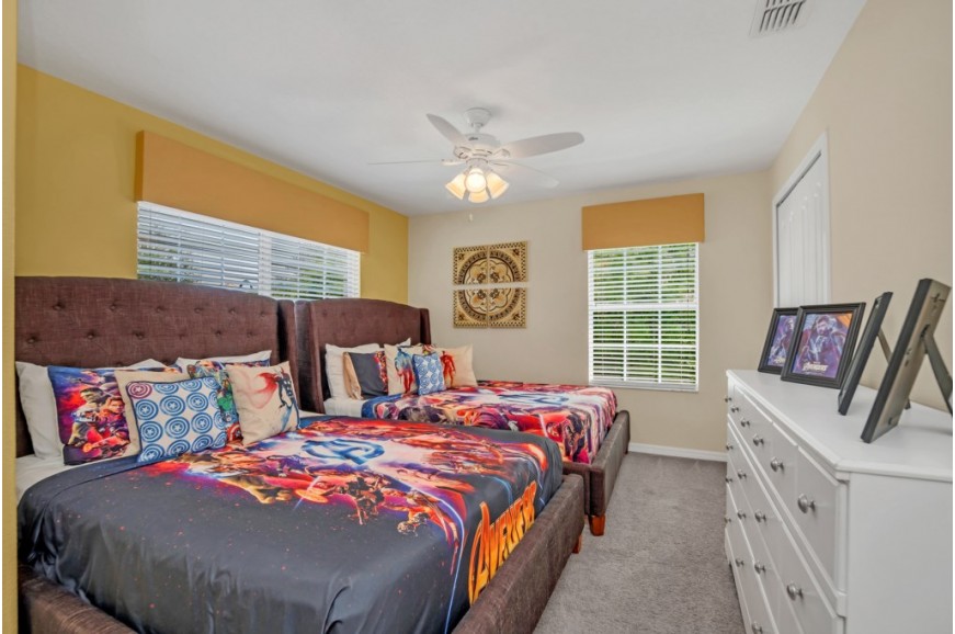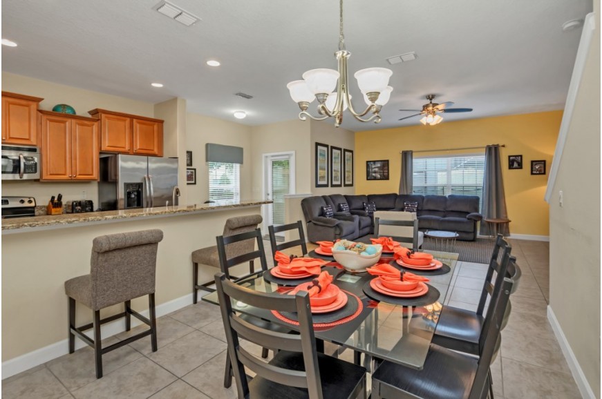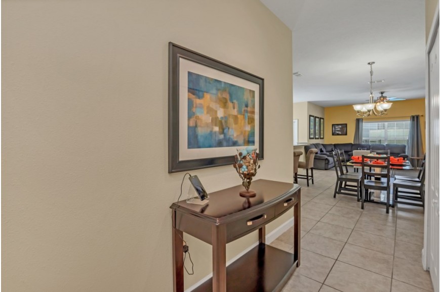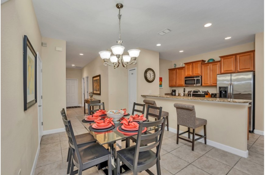 Paradise Palms - Kissimmee, Florida is an upscale gated community located just 5 miles from Walt Disney World. This luxury resort sits nestled just off Hwy 192 in Kissimmee, Florida, and is one of the most desired resorts in the Orlando area. During your stay, you will enjoy this well-appointed home that has been designed and decorated to provide you and your family an abundance of luxury amenities and leaves you well equipped to vacation with all the usual items you would expect to find at home. Paradise Palms Resort is only a 25-minute drive from the Orlando International Airport and is situated central to all of Orlando’s famous attractions. The resort's amenities include a gated community, a water park with Olympic Size Swimming Pool, fountains, waterslides, spa, separate toddler pool, tennis courts, volleyball, and children’s park and clubhouse. The Clubhouse has pool tables, ping-pong tables, a video games area, a sundry shop, a fitness room with top-of-the-line fitness equipment, and a high-definition surround sound movie theater. There are other outdoor recreational activities all surrounding the double Olympic-size heated swimming pool creating a relaxing, playful atmosphere for the entire family! Paradise Palms has all the amenities of a five-star hotel or resort, but with the comfort, convenience, and privacy of a private home. This spacious 5 bedroom holiday villa can comfortably accommodate a larger family or group of up to 10 people.