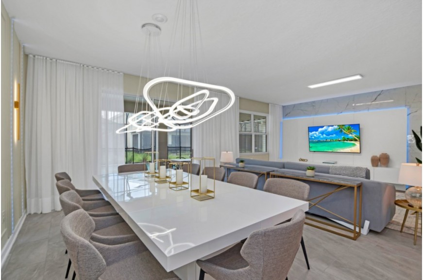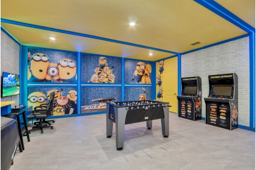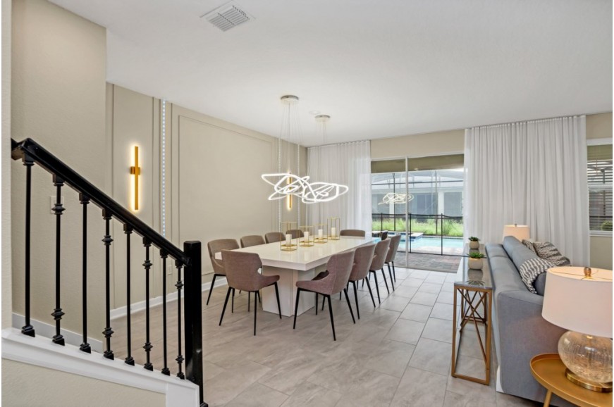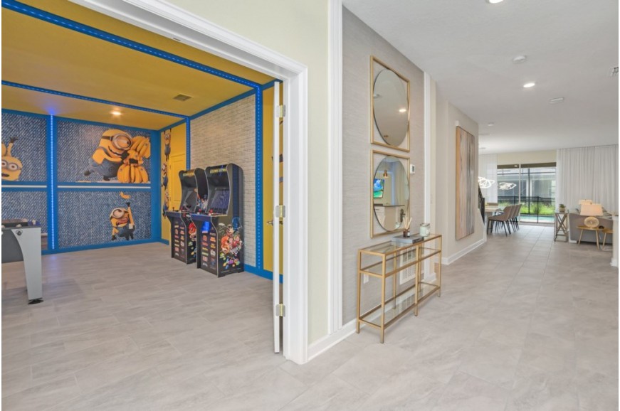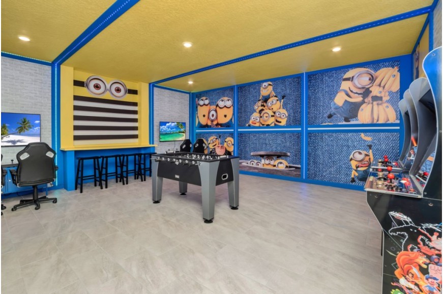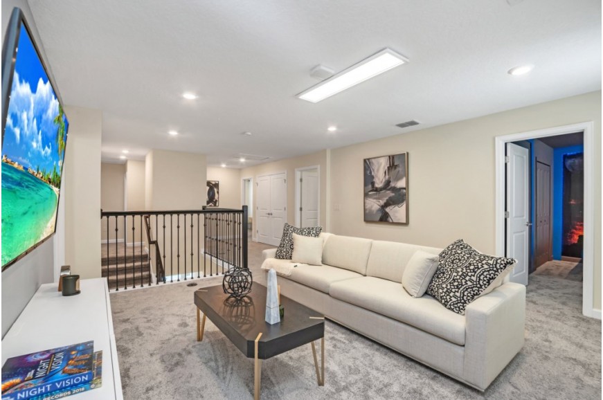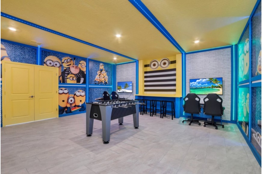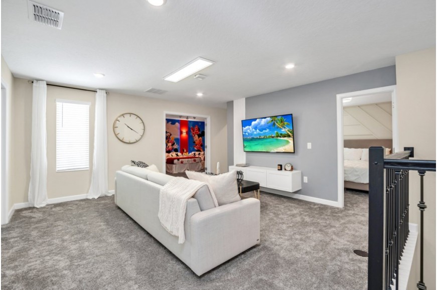 Storey Lake - Kissimmee, Florida is a brand new vacation community located just 4 miles from the magical world of Disney and just minutes to Universal, Sea World, and the many water parks in the area. Central Florida is also home to some of the nation's top-rated golf courses and many are within a 10-minute drive of Storey Lake. The prime location lends itself to the premier shopping corridor including the famed Millennia, top restaurants, and the world-renowned town of Celebration inspired by Disney.  Storey Lake is also a 30-minute drive from the Orlando International Airport. The resort offers the best in family fun and is host to a wide variety of amenities and activities. This spacious 9 bedroom holiday villa can comfortably accommodate a large family or group of up to 18 guests.