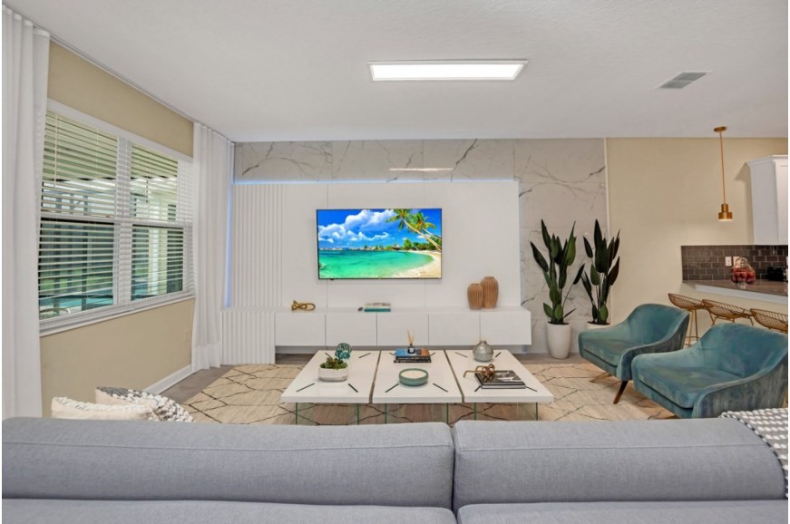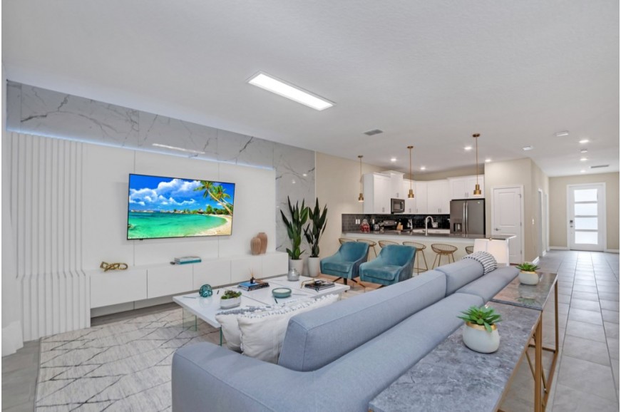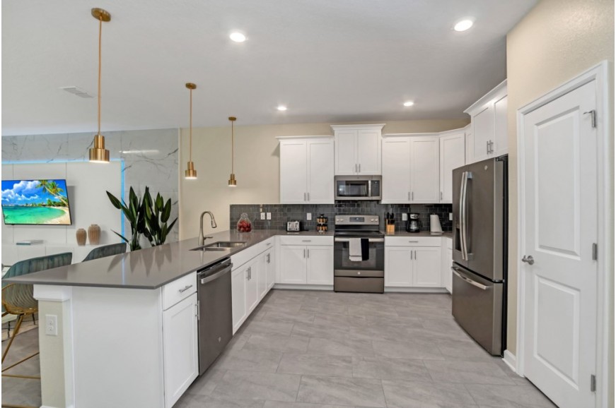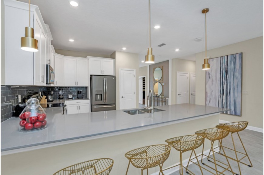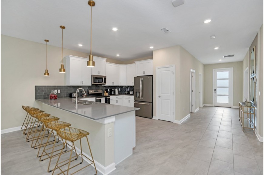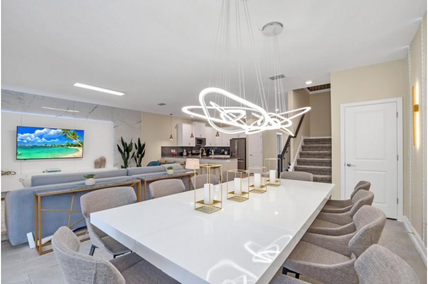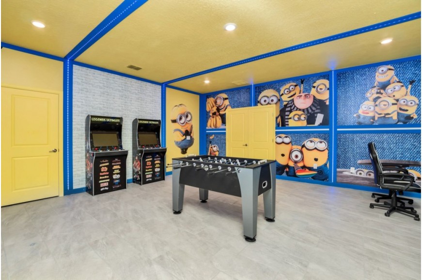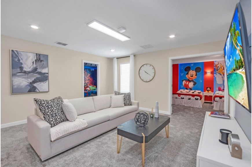 Storey Lake - Kissimmee, Florida is a brand new vacation community located just 4 miles from the magical world of Disney and just minutes to Universal, Sea World, and the many water parks in the area. Central Florida is also home to some of the nation's top-rated golf courses and many are within a 10-minute drive of Storey Lake. The prime location lends itself to the premier shopping corridor including the famed Millennia, top restaurants, and the world-renowned town of Celebration inspired by Disney.  Storey Lake is also a 30-minute drive from the Orlando International Airport. The resort offers the best in family fun and is host to a wide variety of amenities and activities. This spacious 9 bedroom holiday villa can comfortably accommodate a large family or group of up to 18 guests.