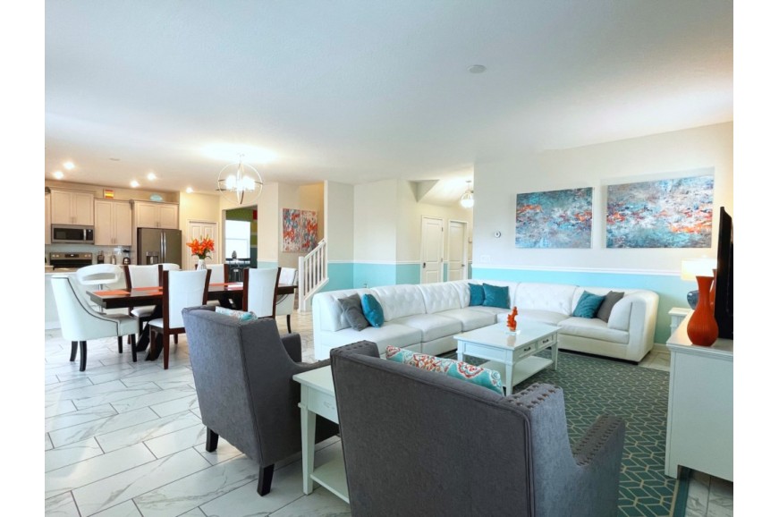 The Retreat at Champions Gate - Kissimmee, Florida is a new upscale gated resort community located just 12 miles from Walt Disney World. This luxury home sits nestled just outside of Orlando, Florida, and will quickly become one of the most desired locations in the Orlando area. During your stay, you will enjoy this well-appointed home that has been designed and decorated to provide you and your family an abundance of luxury amenities and leave you well equipped to vacation with all the usual items you would expect to find at home. The Retreat at Champions Gate is only a 30-minute drive from the Orlando International Airport and is situated central to all if Orlando’s famous attractions. This spacious 6 bedroom holiday villa can comfortably accommodate a larger family or group of up to 12 people.