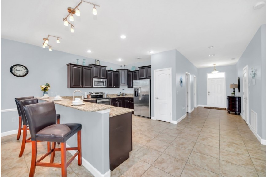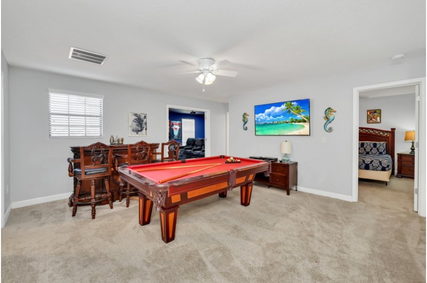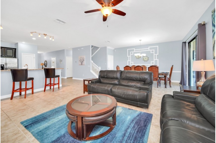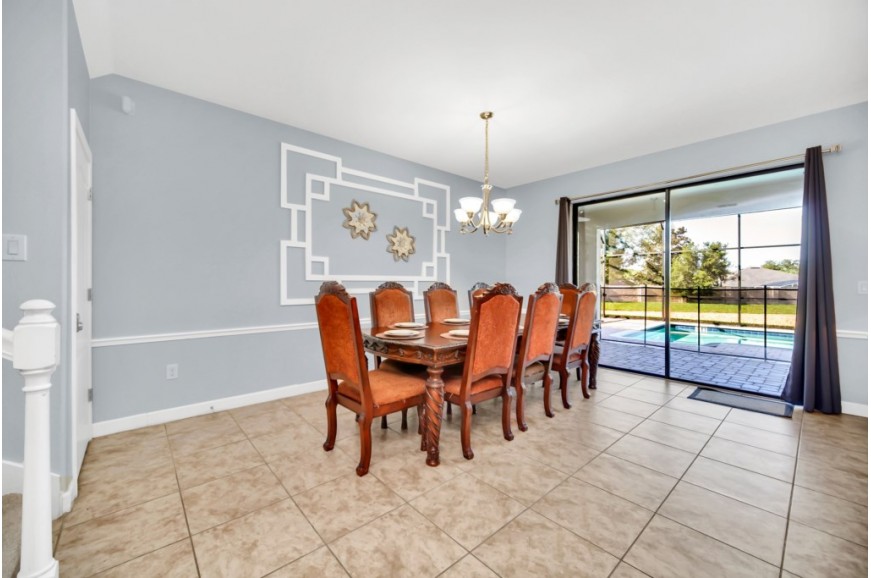 The Retreat at Champions Gate - Kissimmee, Florida is a new upscale gated resort community located just 12 miles from Walt Disney World. This luxury home sits nestled just outside of Orlando, Florida and will quickly become one of the most desired locations in the Orlando area. During your stay, you will enjoy this well-appointed home that has been designed and decorated to provide you and your family an abundance of luxury amenities and leaves you well equipped to vacation with all the usual items you would expect to find at home. The Retreat at Champions Gate is only a 30-minute drive from the Orlando International Airport and is situated central to all of Orlando’s famous attractions. This spacious 8 bedroom holiday villa can comfortably accommodate a larger family or group of up to 16 people.