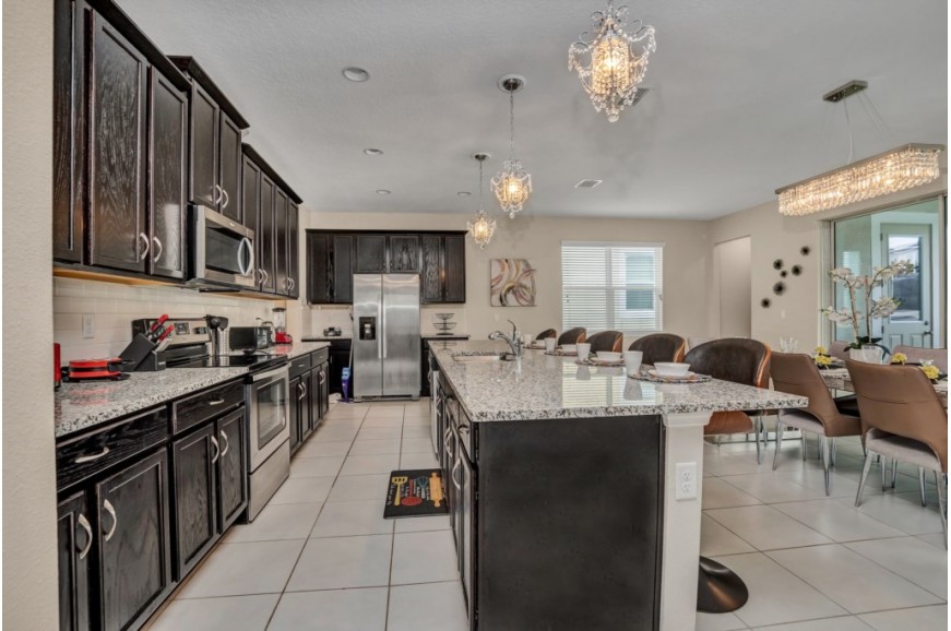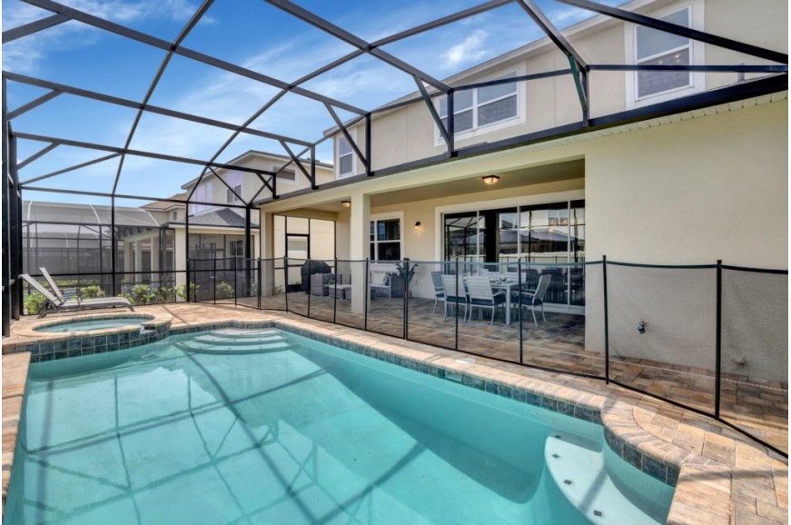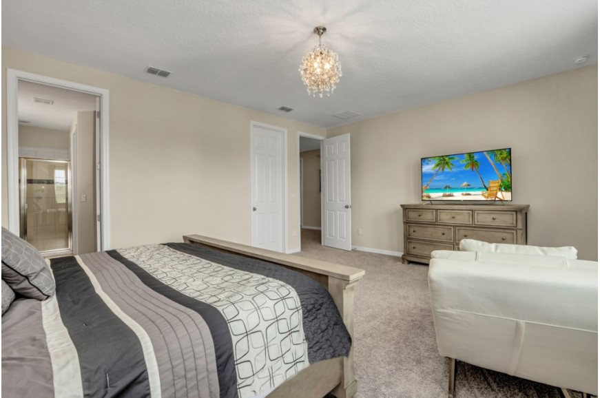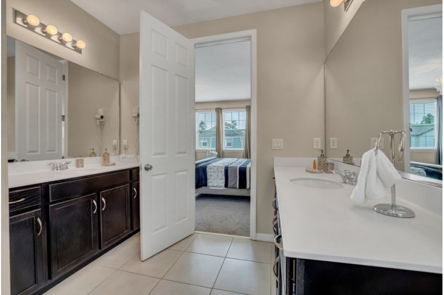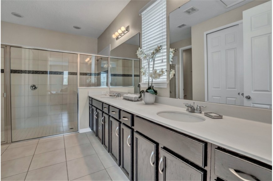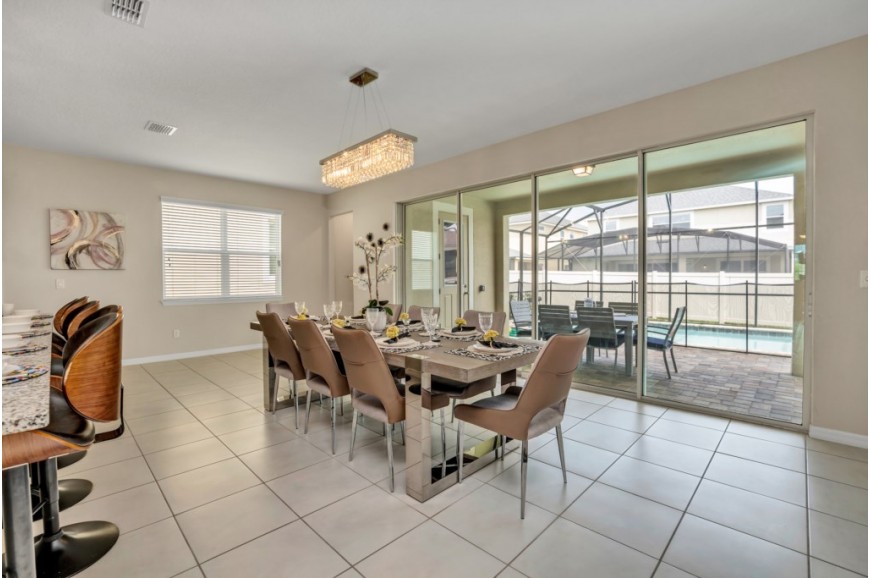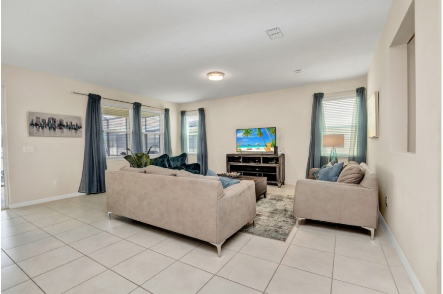 Solara Resort - Kissimmee, Florida is an upscale community currently under development just 7 miles from Walt Disney World. This gated resort community sits nestled just outside of Orlando, Florida. During your stay, you will enjoy this well-appointed home that has been designed and decorated to provide you and your family an abundance of luxury amenities and leaves you well equipped to vacation with all the usual items you would expect to find at home. The resort is only a 30-minute drive from the Orlando International Airport and is situated central to all of Orlando’s famous attractions. The resort boasts an expansive clubhouse which includes a grand pool, complete with surfing simulator, cabanas, pool bar, children's playground, sand volleyball court, basketball court, and soccer field. Inside the clubhouse sits the lounge, bar & grill, fitness center, business center, and sundries store. This spacious 5 bedroom holiday villa can comfortably accommodate a larger family or group of up to 10 people.