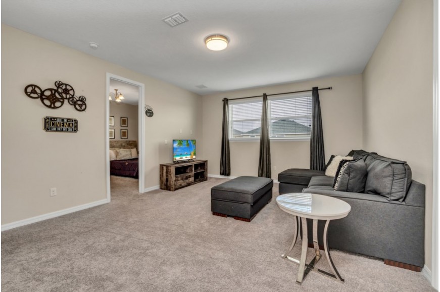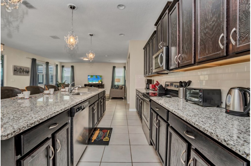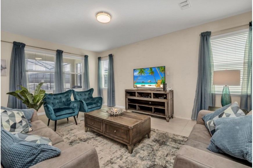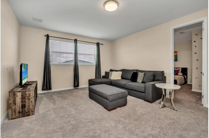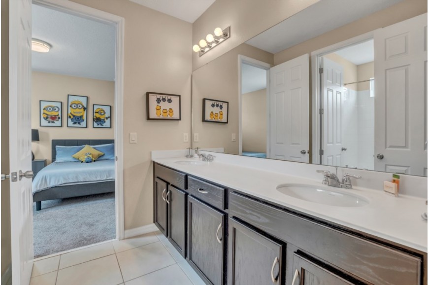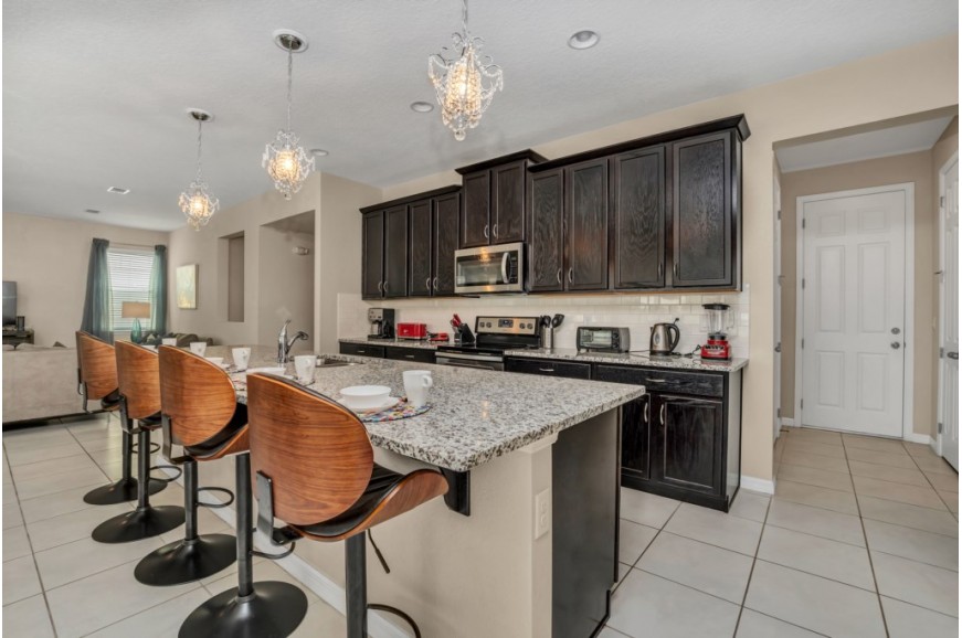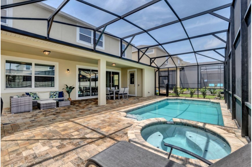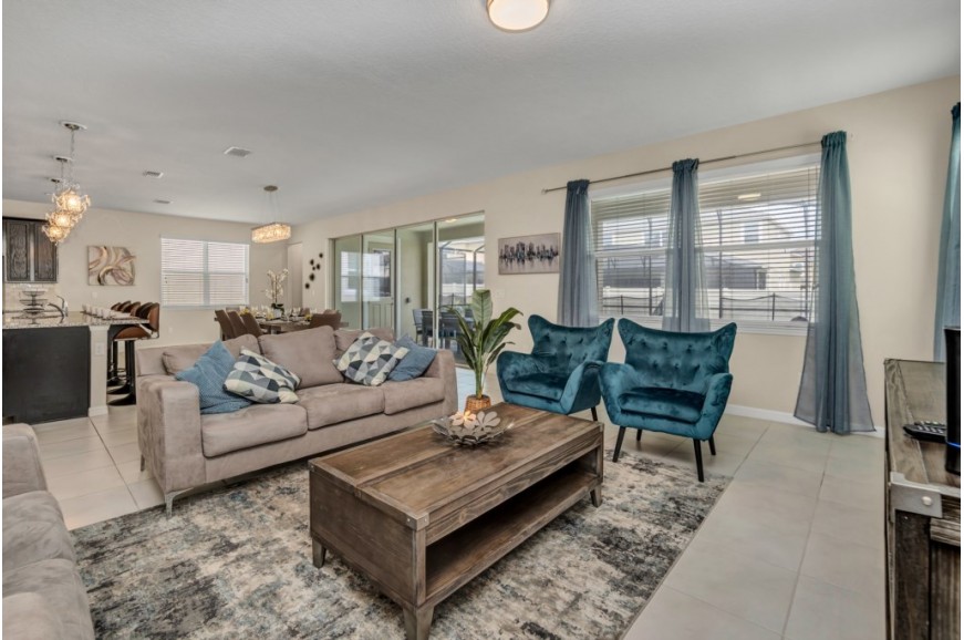 Solara Resort - Kissimmee, Florida is an upscale community currently under development just 7 miles from Walt Disney World. This gated resort community sits nestled just outside of Orlando, Florida. During your stay, you will enjoy this well-appointed home that has been designed and decorated to provide you and your family an abundance of luxury amenities and leaves you well equipped to vacation with all the usual items you would expect to find at home. The resort is only a 30-minute drive from the Orlando International Airport and is situated central to all of Orlando’s famous attractions. The resort boasts an expansive clubhouse which includes a grand pool, complete with surfing simulator, cabanas, pool bar, children's playground, sand volleyball court, basketball court, and soccer field. Inside the clubhouse sits the lounge, bar & grill, fitness center, business center, and sundries store. This spacious 5 bedroom holiday villa can comfortably accommodate a larger family or group of up to 10 people.