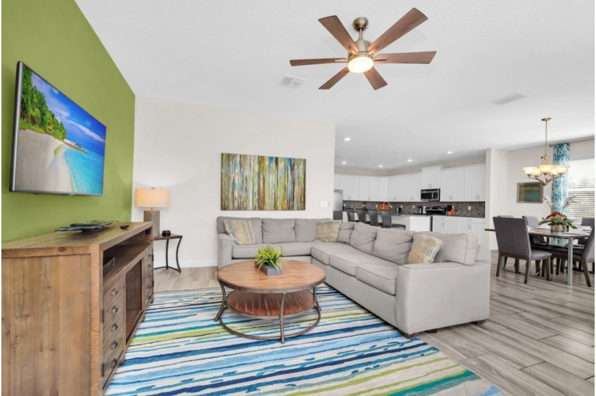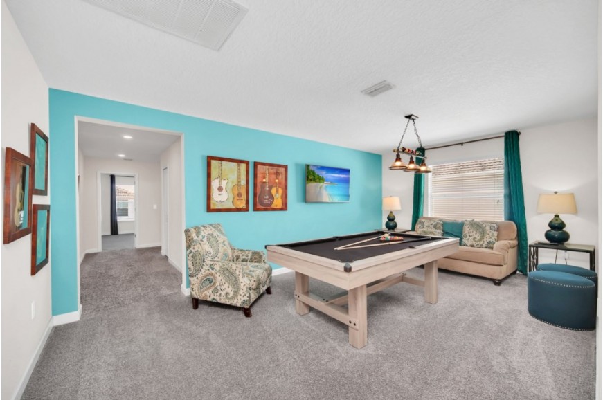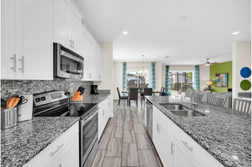 Storey Lake - Kissimmee, Florida is a brand new vacation community located just 4 miles from the magical world of Disney and just minutes to Universal, Sea World and the many water parks in the area. Central Florida is also home to some of the nation's top-rated golf courses and many are within a 10-minute drive of Storey Lake. The prime location lends itself to the premier shopping corridor including the famed Millennia, top restaurants and the world renowned town of Celebration inspired by Disney.  Storey Lake is also a 30-minute drive from the Orlando International Airport. The resort offers the best in family fun and is host to a wide variety of amenities and activities. This spacious 6 bedroom holiday villa can comfortably accommodate a large family or group of up to 12 guests.