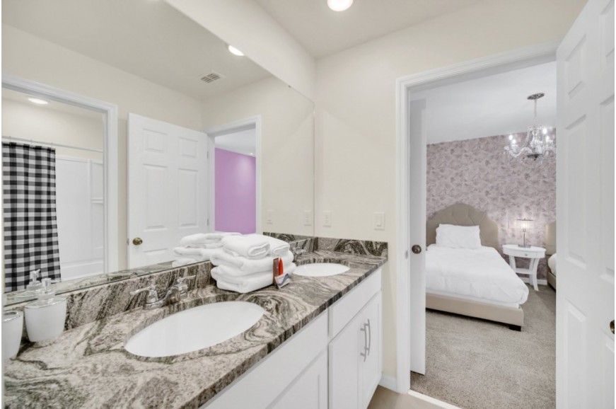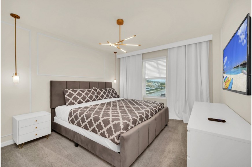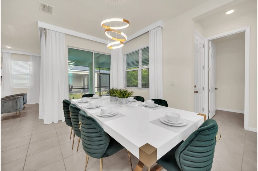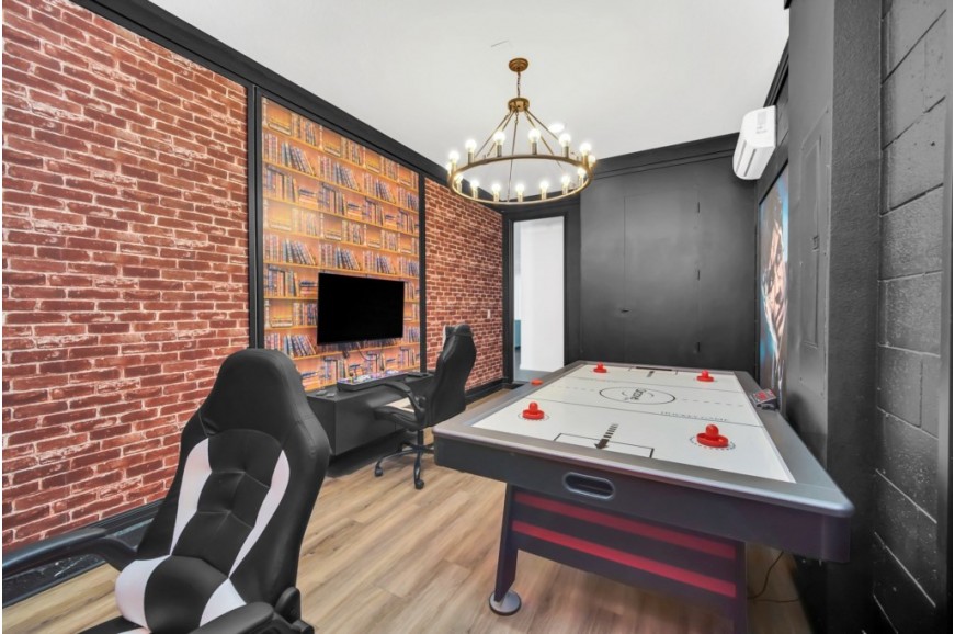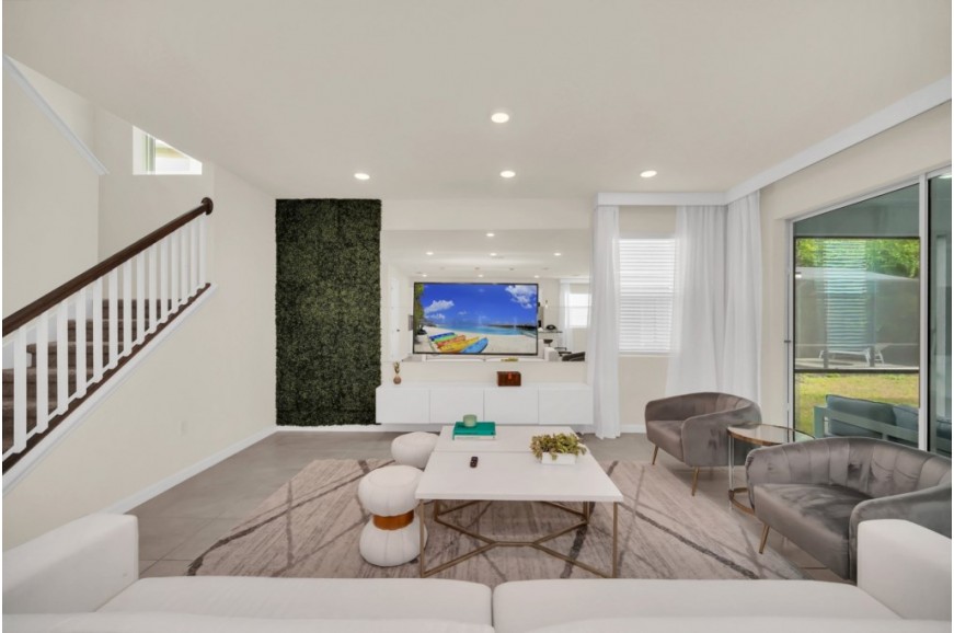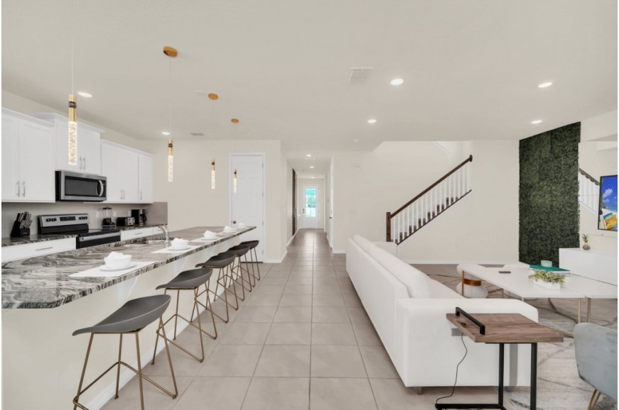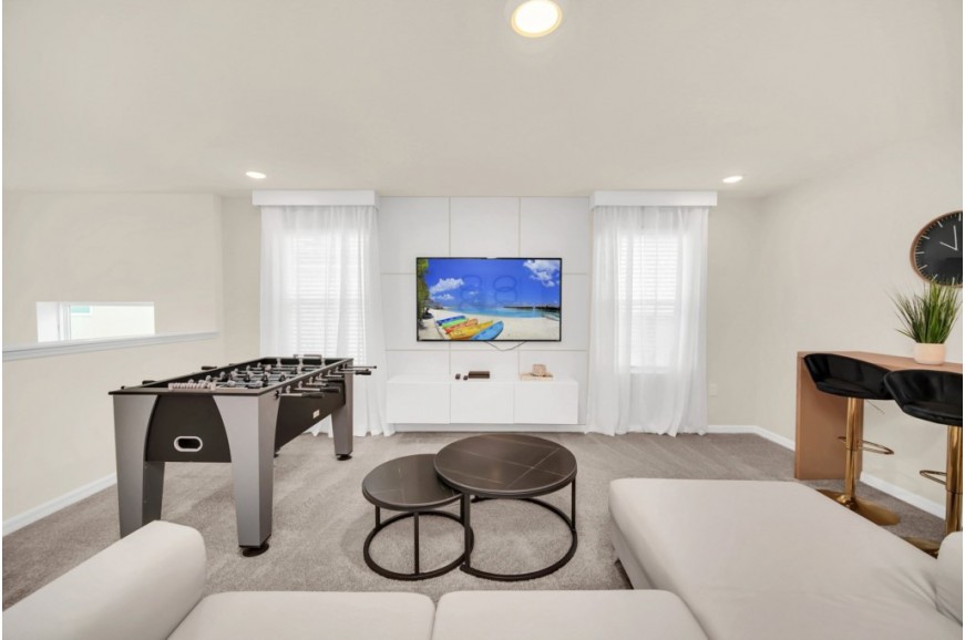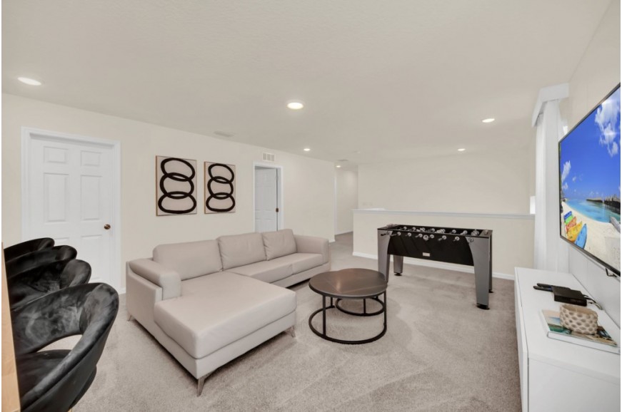 Solara Resort - Kissimmee, Florida is an upscale community currently under development just 7 miles from Walt Disney World. This gated resort community sits nestled just outside of Orlando, Florida. During your stay, you will enjoy this well-appointed home that has been designed and decorated to provide you and your family an abundance of luxury amenities and leaves you well equipped to vacation with all the usual items you would expect to find at home. The resort is only a 30-minute drive from the Orlando International Airport and is situated central to all of Orlando’s famous attractions. The resort boasts an expansive clubhouse which includes a grand pool, complete with surfing simulator, cabanas, pool bar, children's playground, sand volleyball court, basketball court, and soccer field. Inside the clubhouse sits the lounge, bar & grill, fitness center, business center, and sundries store. This spacious 6 bedroom holiday villa can comfortably accommodate a larger family or group of up to 12 people.