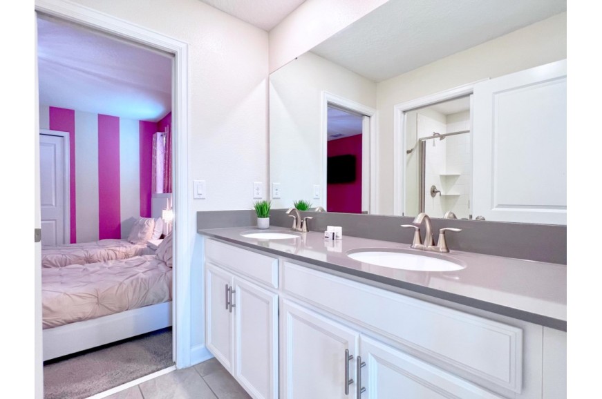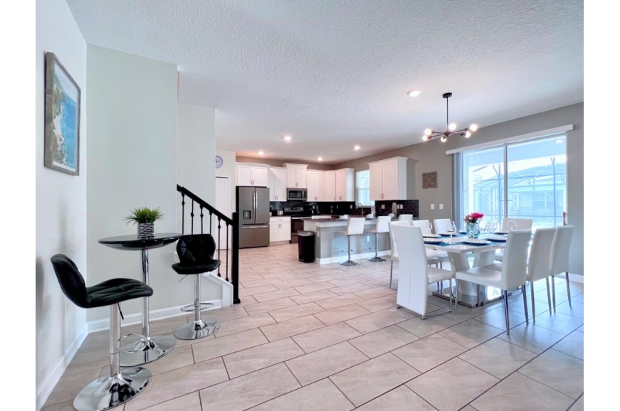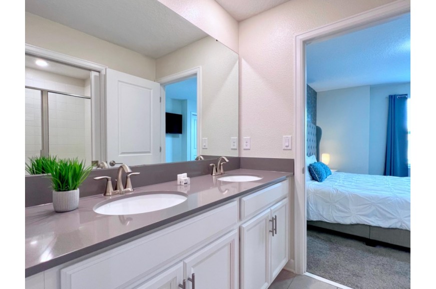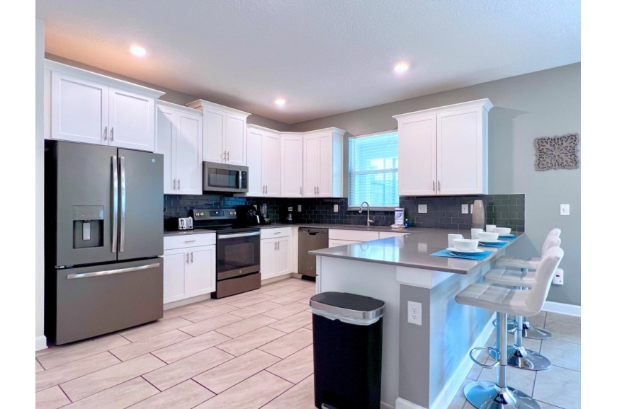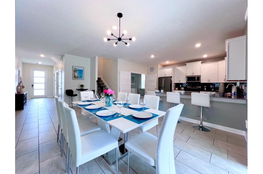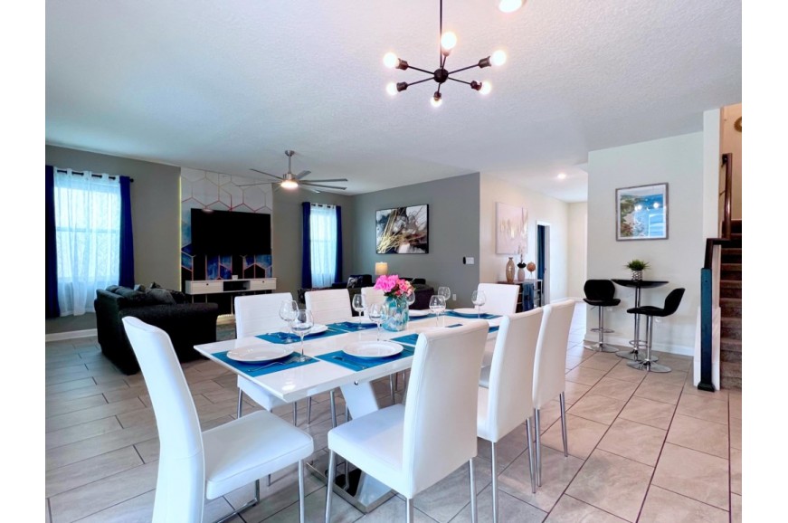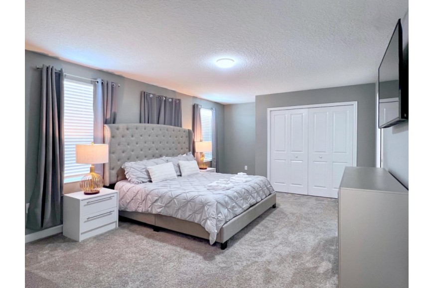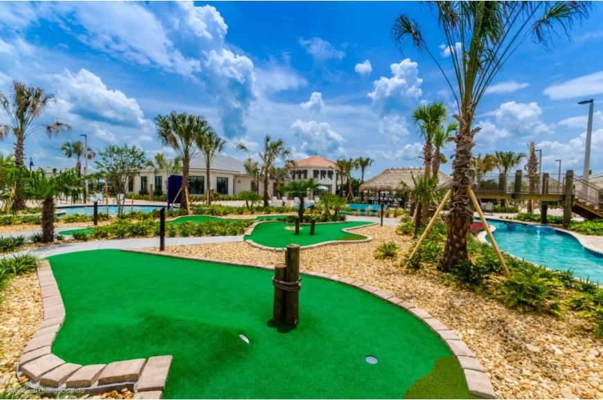 Storey Lake - Kissimmee is a brand new vacation community located just 4 miles from the magical world of Disney and just minutes to Universal, Sea World, and the many water parks in the area. Central Florida is also home to some of the nation's top-rated golf courses and many are within a 10-minute drive of Storey Lake. The prime location lends itself to the premier shopping corridor including the famed Millennia, top restaurants, and the world-renowned town of Celebration inspired by Disney. Storey Lake is also a 30-minute drive from the Orlando International Airport. The resort offers the best in family fun and is host to a wide variety of amenities and activities. This spacious 8-bedroom holiday villa can comfortably accommodate a large family or group of up to 16 guests.