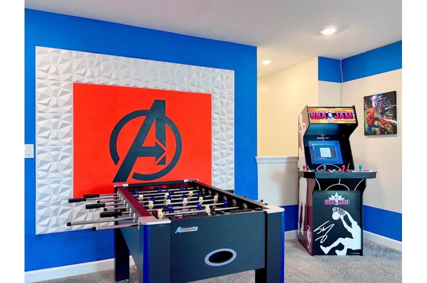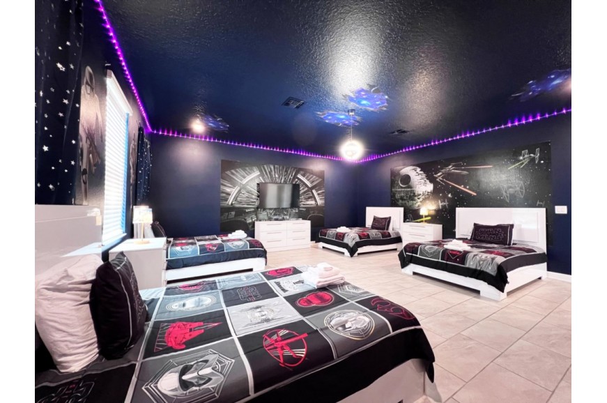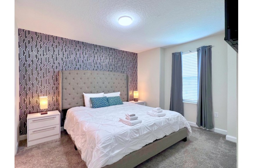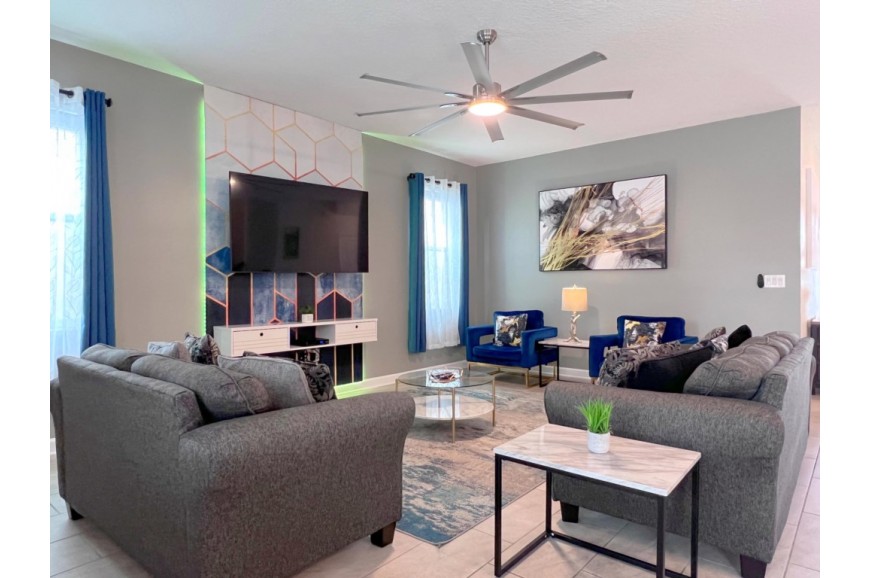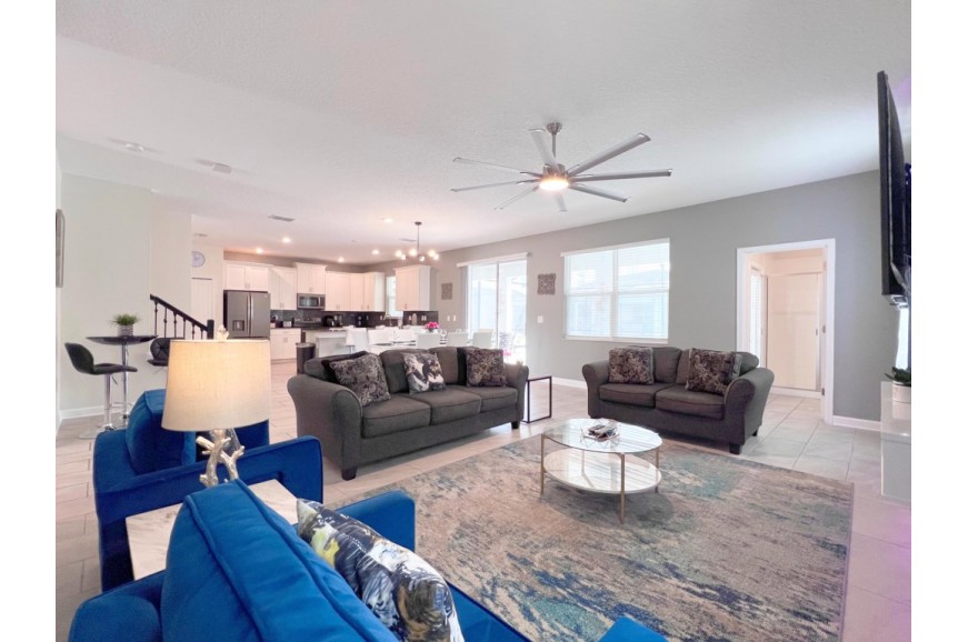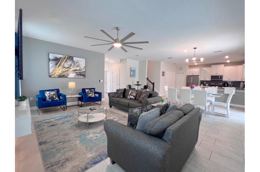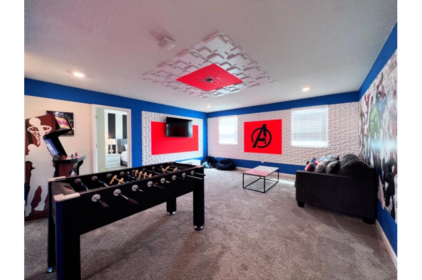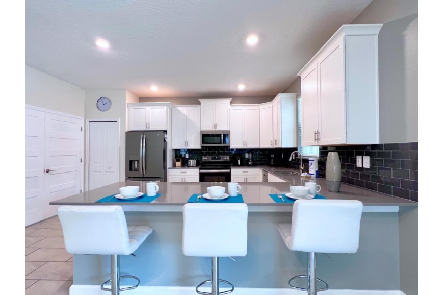 Storey Lake - Kissimmee is a brand new vacation community located just 4 miles from the magical world of Disney and just minutes to Universal, Sea World, and the many water parks in the area. Central Florida is also home to some of the nation's top-rated golf courses and many are within a 10-minute drive of Storey Lake. The prime location lends itself to the premier shopping corridor including the famed Millennia, top restaurants, and the world-renowned town of Celebration inspired by Disney. Storey Lake is also a 30-minute drive from the Orlando International Airport. The resort offers the best in family fun and is host to a wide variety of amenities and activities. This spacious 8-bedroom holiday villa can comfortably accommodate a large family or group of up to 16 guests.
