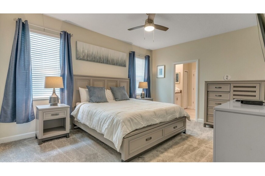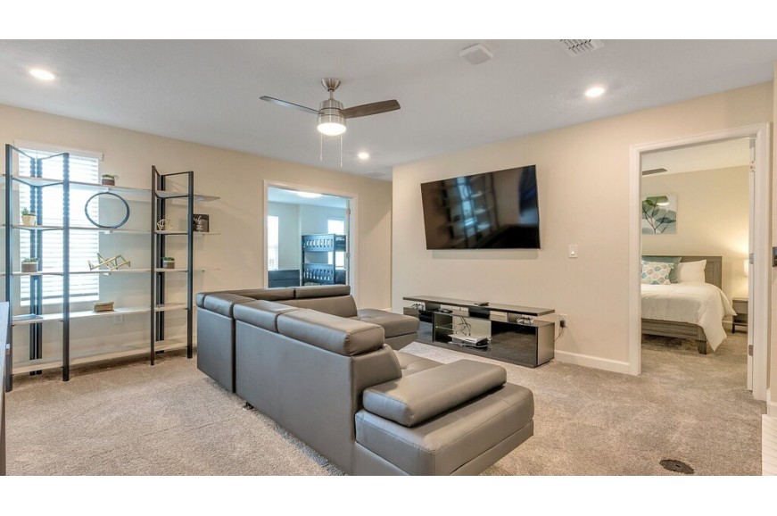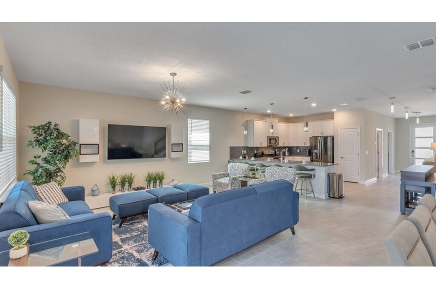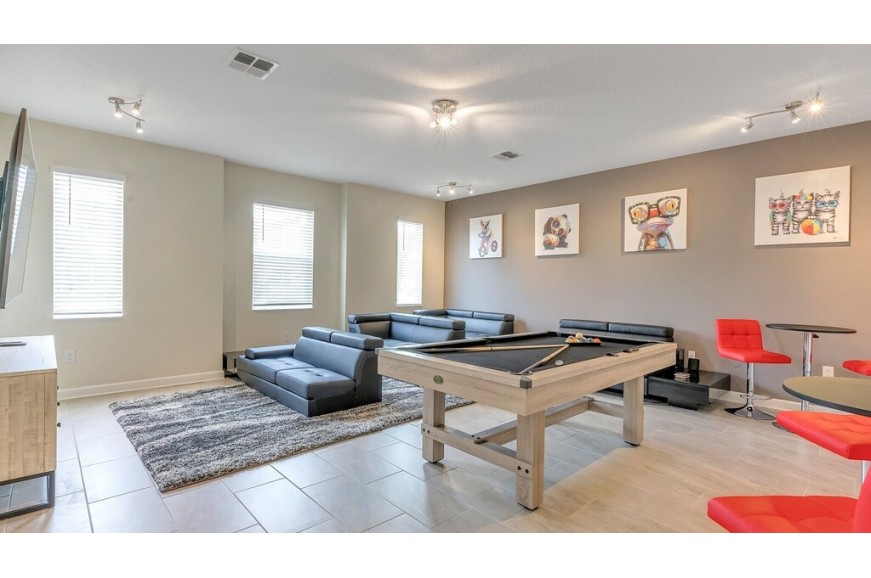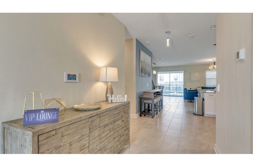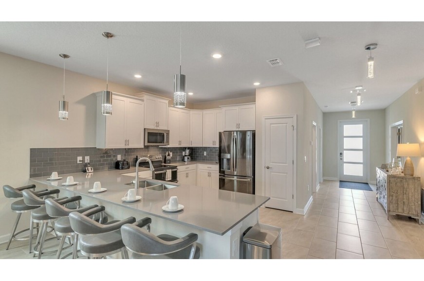 The Retreat at Champions Gate - Kissimmee, Florida is a new upscale gated resort community located just 12 miles from Walt Disney World. This luxury home sits nestled just outside of Orlando, Florida and will quickly become one of the most desired locations in the Orlando area. During your stay, you will enjoy this well-appointed home that has been designed and decorated to provide you and your family an abundance of luxury amenities and leaves you well equipped to vacation with all the usual items you would expect to find at home. The Retreat at Champions Gate is only a 30-minute drive from the Orlando International Airport and is situated central to all of Orlando’s famous attractions. This spacious 9 bedroom holiday villa can comfortably accommodate a larger family or group of up to 18 people.