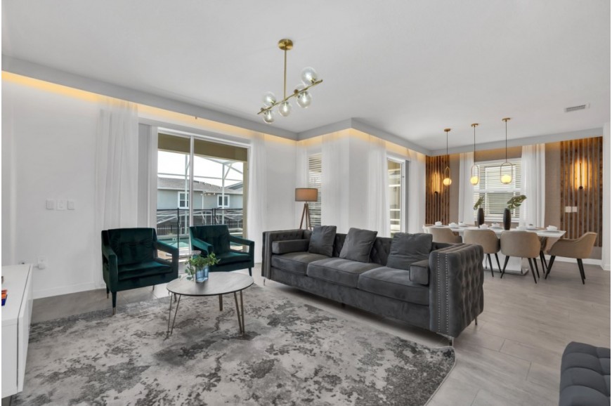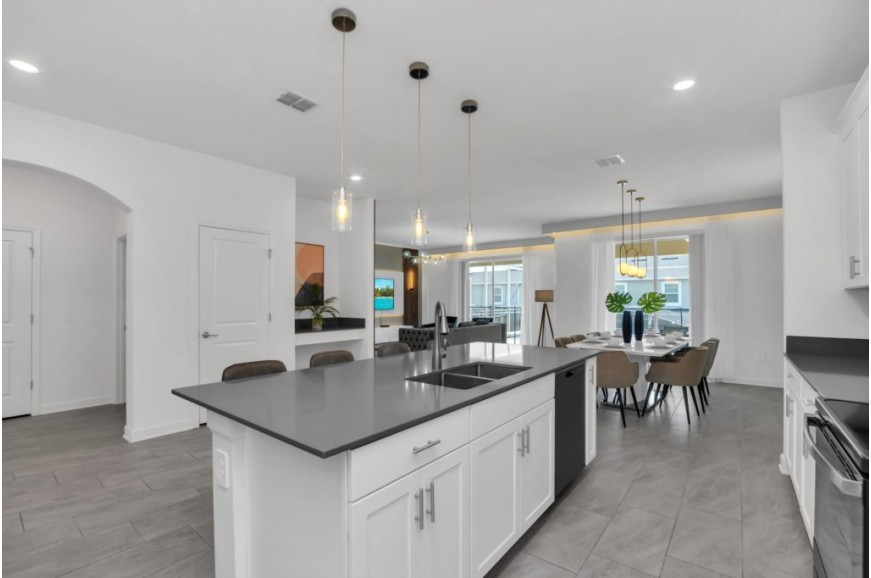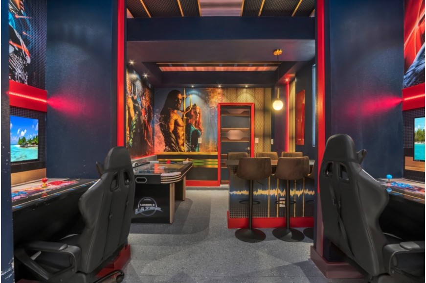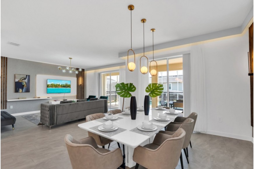 The Retreat at Champions Gate - Kissimmee, Florida is a new upscale gated resort community located just 12 miles from Walt Disney World. This luxury home sits nestled just outside of Orlando, Florida, and will quickly become one of the most desired locations in the Orlando area. During your stay, you will enjoy this well-appointed home that has been designed and decorated to provide you and your family with an abundance of luxury amenities and leaves you well-equipped to vacation with all the usual items you would expect to find at home. The Retreat at Champions Gate is only a 30-minute drive from the Orlando International Airport and is situated central to all of Orlando’s famous attractions. This spacious 6-bedroom holiday villa can comfortably accommodate a larger family or group of up to 12 people.
