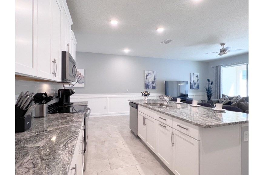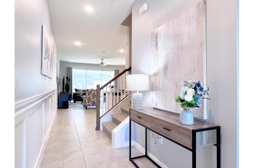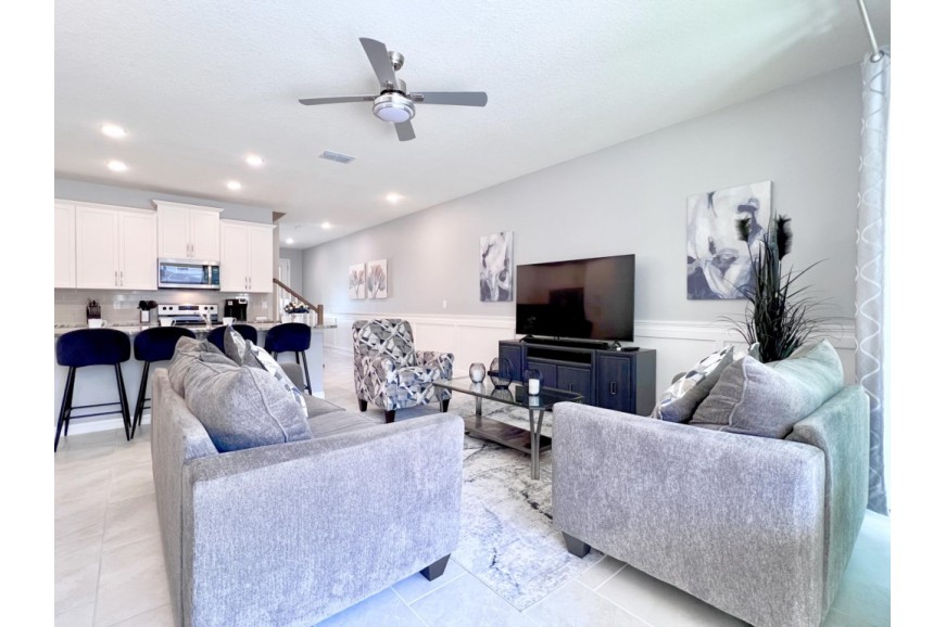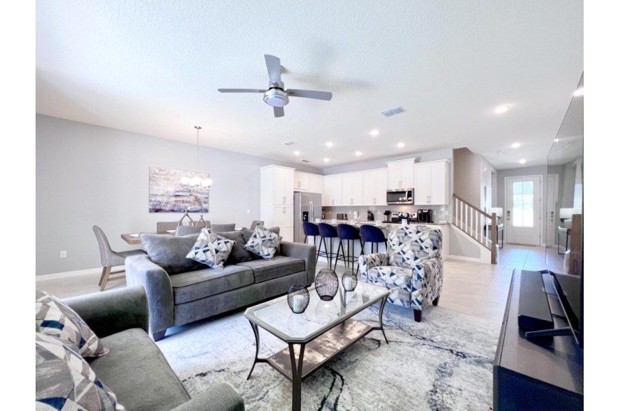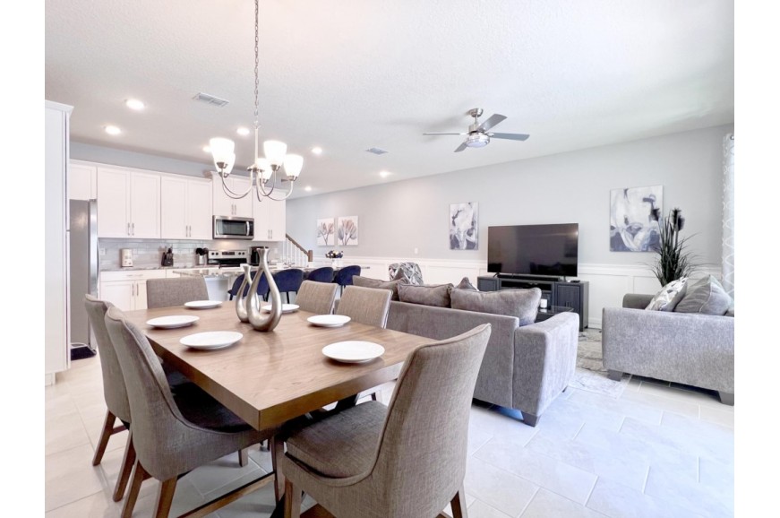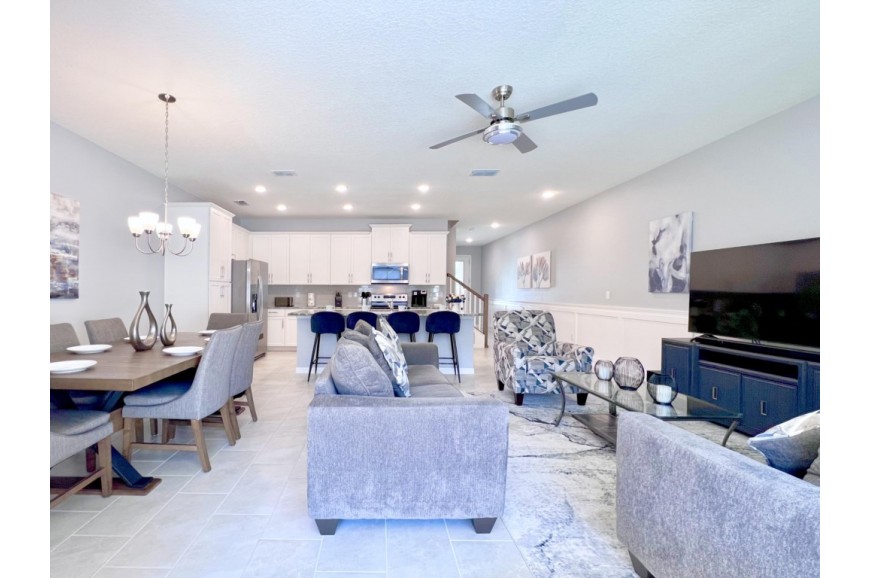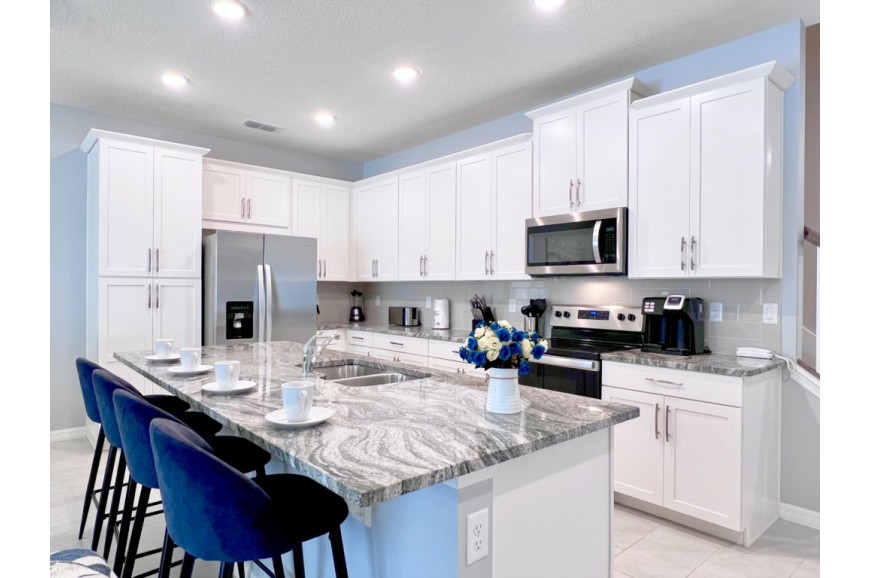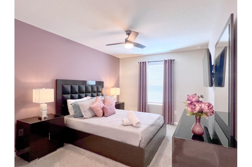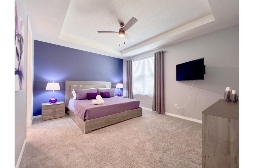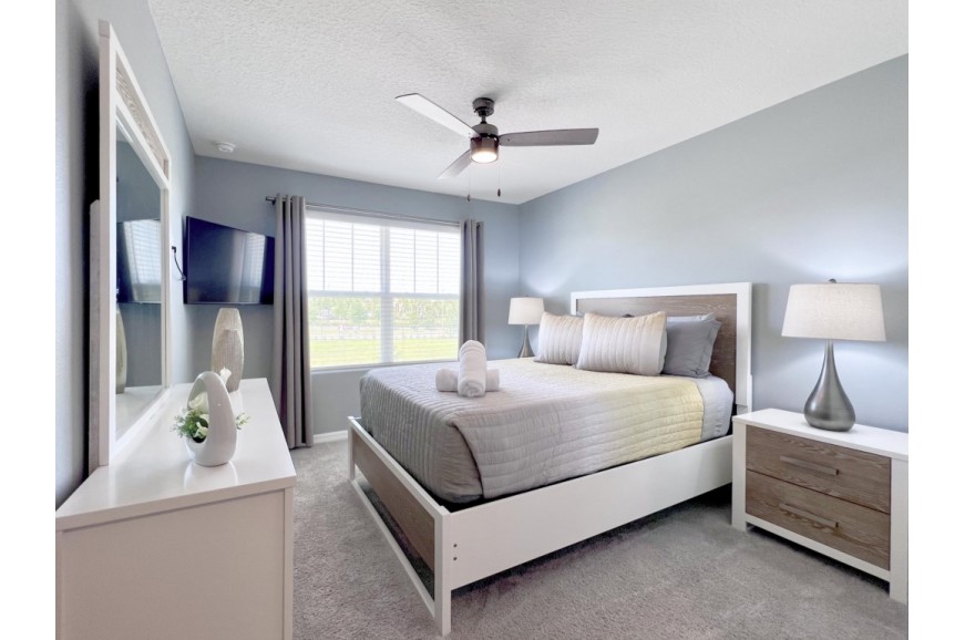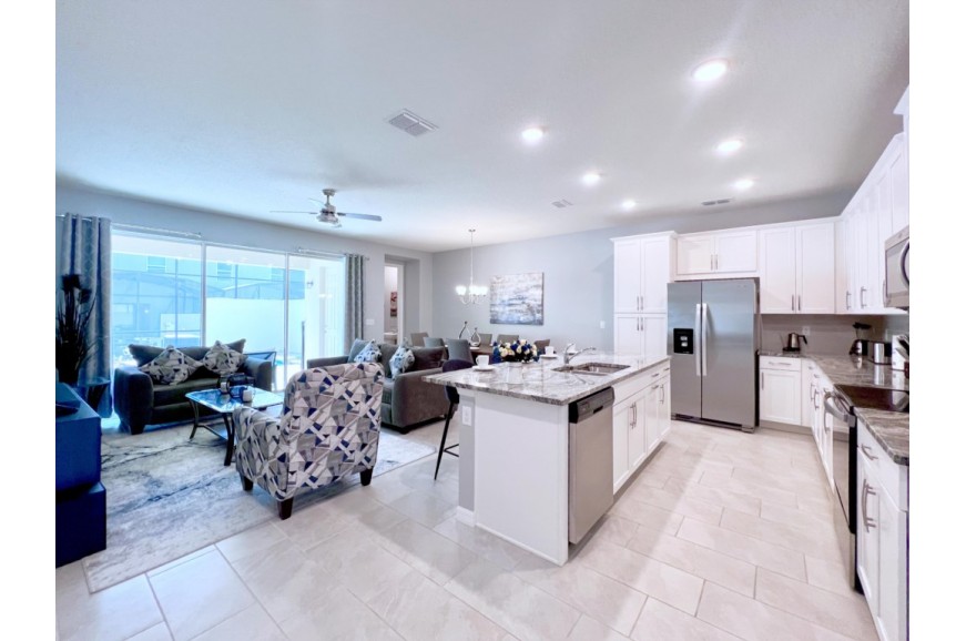 Solara Resort - Kissimmee, Florida is an upscale community currently under development just 7 miles from Walt Disney World. This gated resort community sits nestled just outside of Orlando, Florida. During your stay, you will enjoy this well-appointed home that has been designed and decorated to provide you and your family with an abundance of luxury amenities and leaves you well-equipped to vacation with all the usual items you would expect to find at home. The resort is only a 30-minute drive from the Orlando International Airport and is situated central to all of Orlando’s famous attractions. The resort boasts an expansive clubhouse that includes a grand pool, complete with a surfing simulator, cabanas, pool bar, children's playground, sand volleyball court, basketball court, and soccer field. Inside the clubhouse sits the lounge, bar & grill, fitness center, business center, and sundries store. This spacious 5-bedroom holiday villa can comfortably accommodate a larger family or group of up to 10 people.