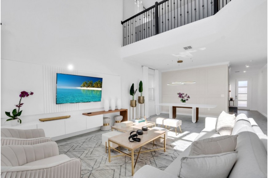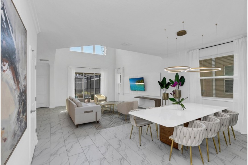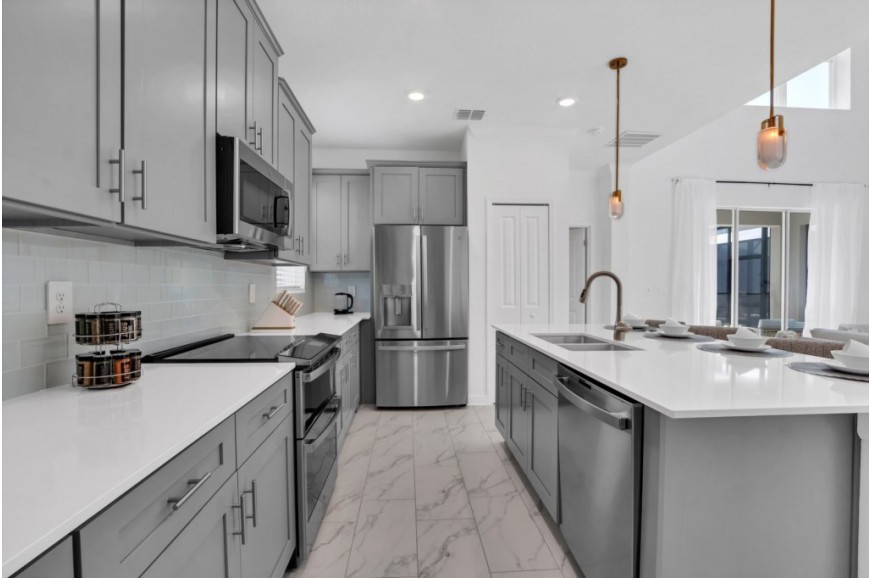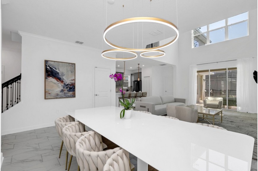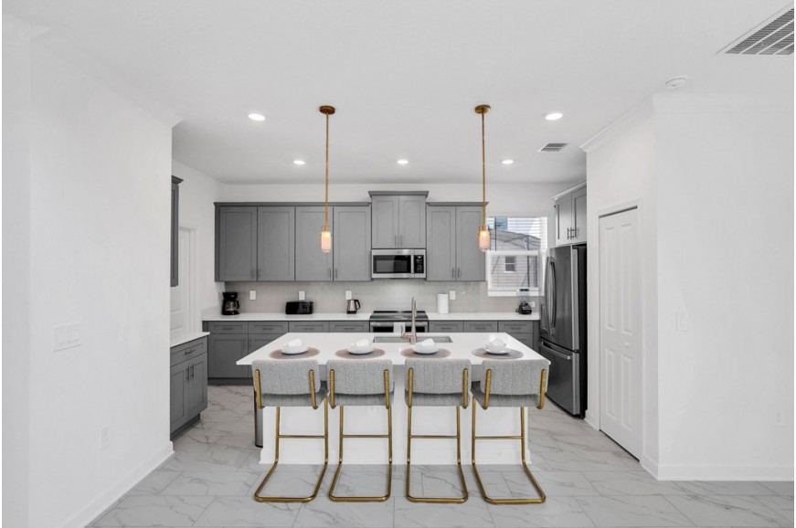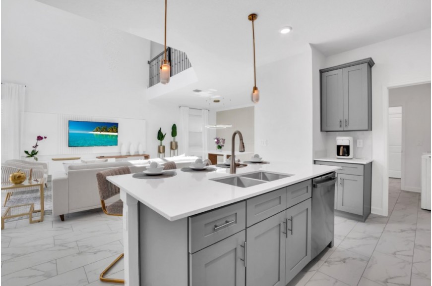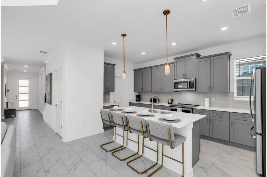 Storey Lake - Kissimmee, Florida is a brand new vacation community located just 4 miles from the magical world of Disney and just minutes to Universal, Sea World and the many water parks in the area. Central Florida is also home to some of the nation's top-rated golf courses and many are within a 10-minute drive of Storey Lake. The prime location lends itself to the premier shopping corridor including the famed Millennia, top restaurants and the world-renowned town of Celebration inspired by Disney. Storey Lake is also a 30-minute drive from the Orlando International Airport. The resort offers the best in family fun and is host to a wide variety of amenities and activities. This spacious 5 bedroom holiday villa can comfortably accommodate a large family or group of up to 10 guests.