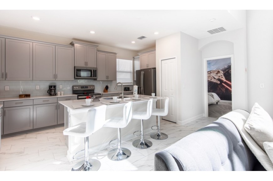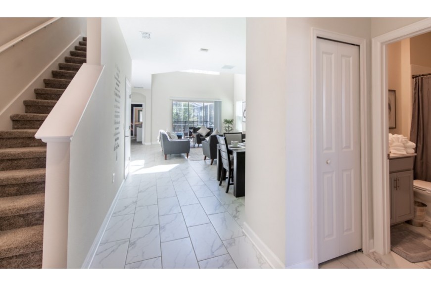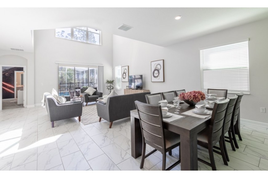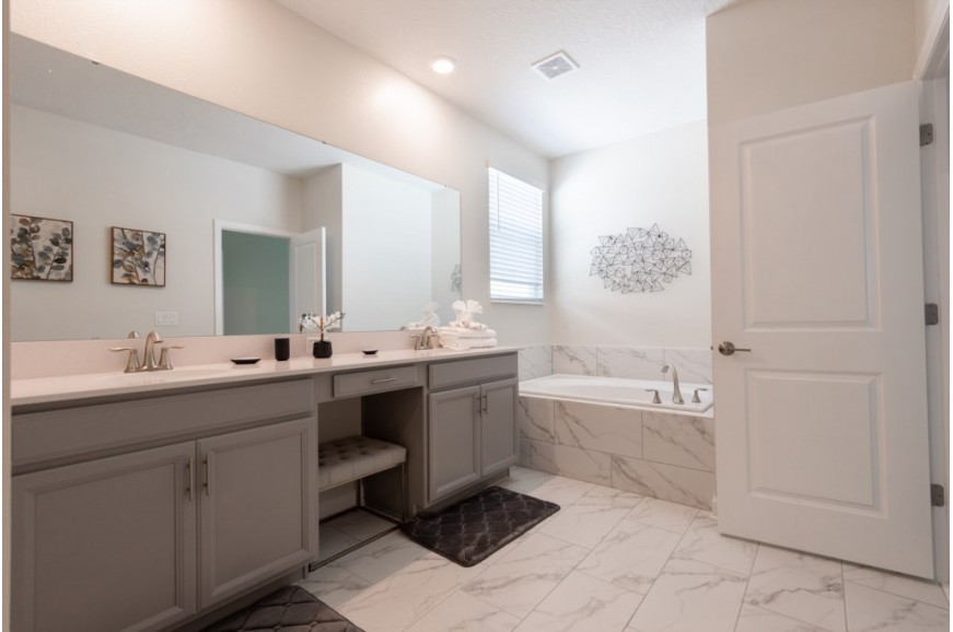 The Retreat at Champions Gate - Kissimmee, Florida is a new upscale gated resort community located just 12 miles from Walt Disney World. This luxury home sits nestled just outside of Orlando, Florida, and will quickly become one of the most desired locations in the Orlando area. During your stay, you will enjoy this well-appointed home that has been designed and decorated to provide you and your family an abundance of luxury amenities and leaves you well equipped to vacation with all the usual items you would expect to find at home. The Retreat at Champions Gate is only a 30-minute drive from the Orlando International Airport and is situated central to all of Orlando’s famous attractions. This spacious 5 bedroom holiday villa can comfortably accommodate a larger family or group of up to 10 people.