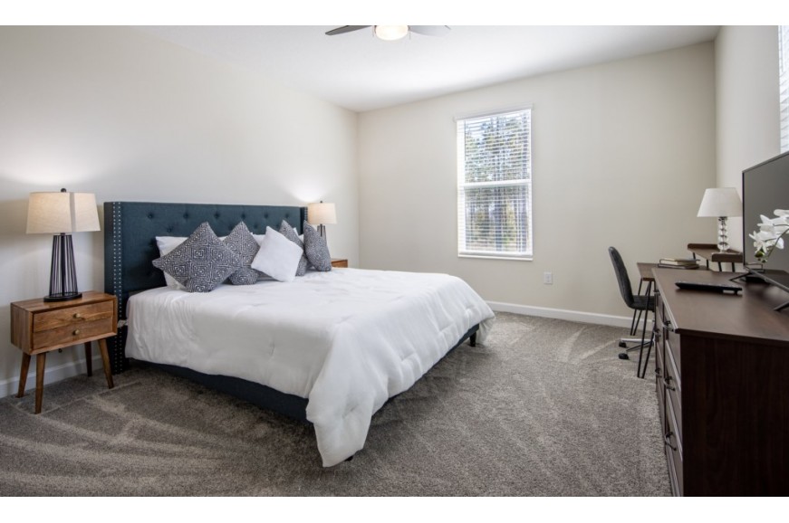 Guests enjoy a bounty of resort amenities at the Oasis Club at ChampionsGate, from tropical swimming pools, meandering lazy river, children’s water playground, and splash pad. Steps away from the bustle of water fun is a secluded quiet pool and spa. Begin and end your day relaxing under the shade of a private cabana. Enjoy a tropical libation at the poolside tiki bar and grab a bite at the Grille Room and Bar.