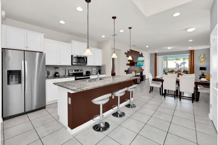 Windsor at Westside - Kissimmee, Florida is an upscale gated community located just 10 minutes from Walt Disney World. This luxury home sits nestled just outside of Orlando, Florida, and has quickly become one of the most desired locations in the Orlando area. During your stay, you will enjoy this well-appointed home that has been designed and decorated to provide you and your family an abundance of luxury amenities and leaves you well equipped to vacation with all the usual items you would expect to find at home. Windsor at Westside is only a 30-minute drive from the Orlando International Airport and is situated central to all of Orlando’s famous attractions. This spacious 7 bedroom holiday villa can comfortably accommodate a larger family or group of up to 14 people.