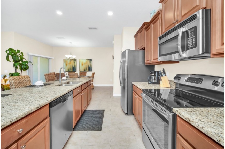 • Fully Equipped Kitchen with Granite Countertops and Stainless Steel Appliances