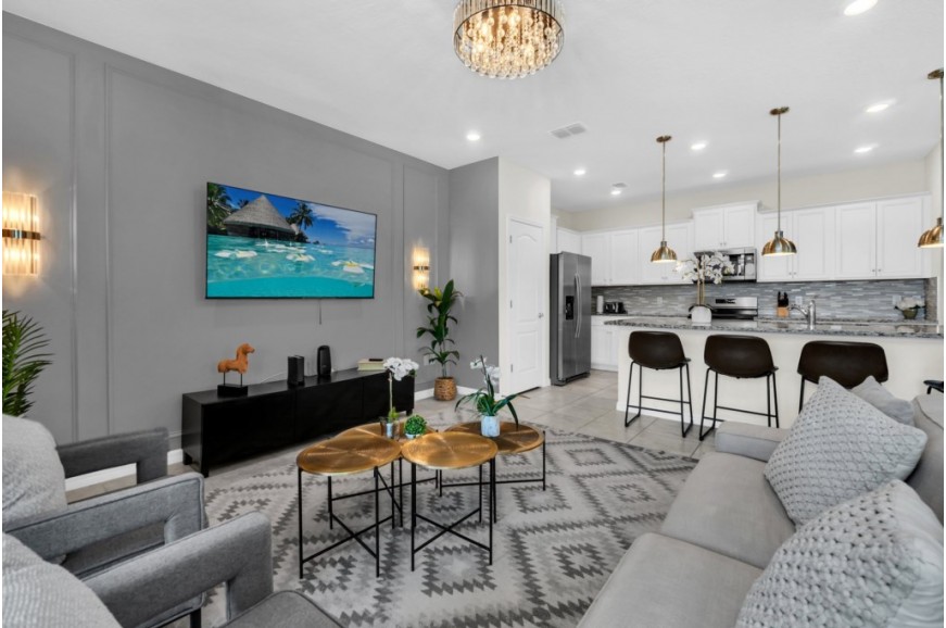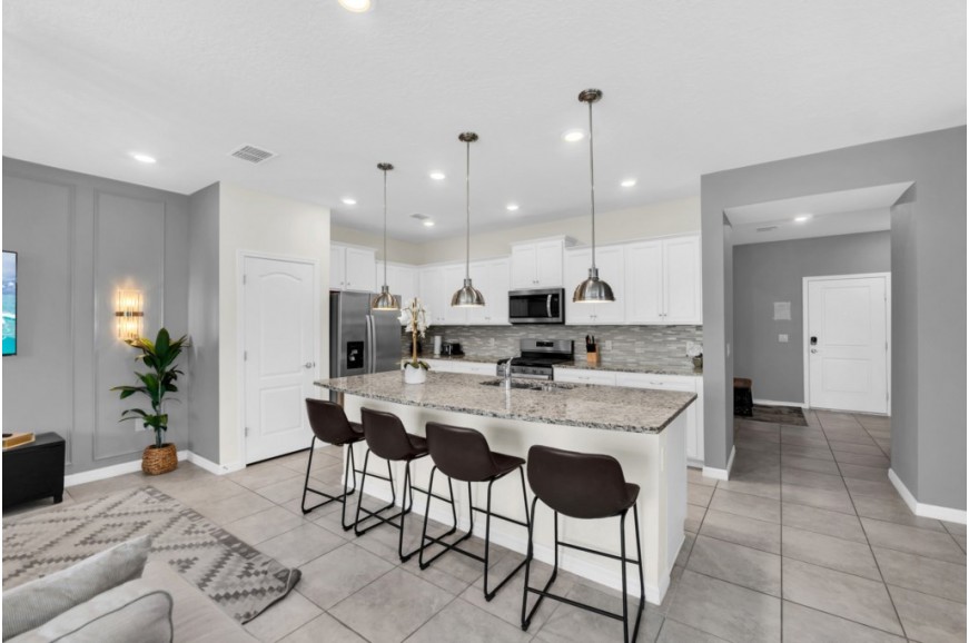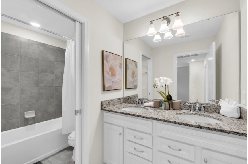 Solterra Resort - Davenport, Florida is a paradise located only 15 minutes from the area's main attraction... Walt Disney World. This luxury resort sits nestled just outside of Orlando, Florida, and has quickly become one of the most desired resorts in the Orlando area. During your stay, you will enjoy this well-appointed home that has been designed and decorated to provide you and your family an abundance of luxury amenities and leaves you well equipped to vacation with all the usual items you would expect to find at home. Solterra Resort is only a 30-minute drive from the Orlando International Airport and is situated central to all of Orlando’s famous attractions. The resort amenities include a 6700 square foot clubhouse, swimming pool, spa, fitness center, business center with Internet, volleyball, tennis, children's playground, and picnic area. This spacious 5 bedroom townhome can comfortably accommodate a larger family or group of up to 10 people.