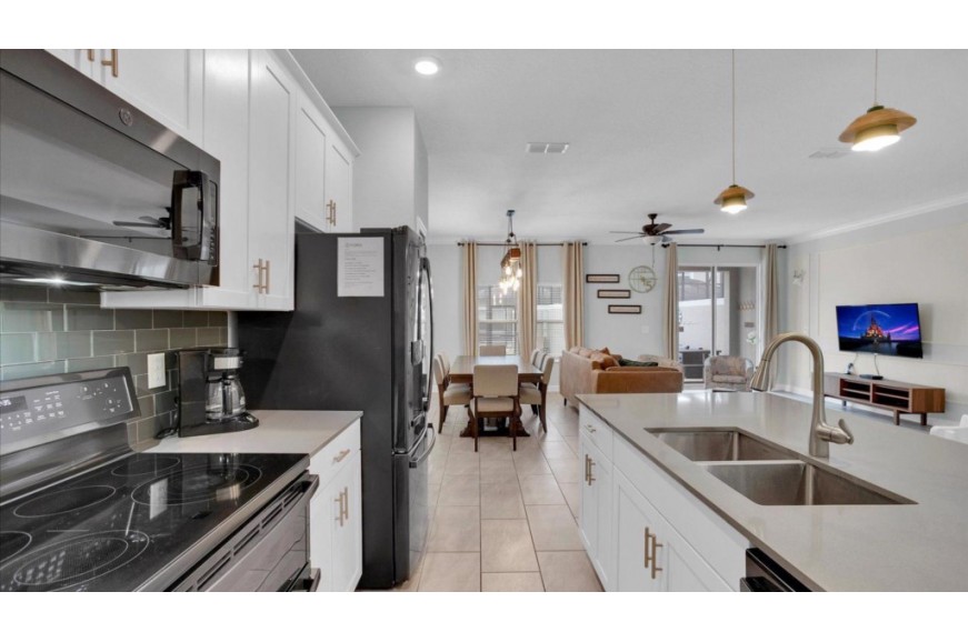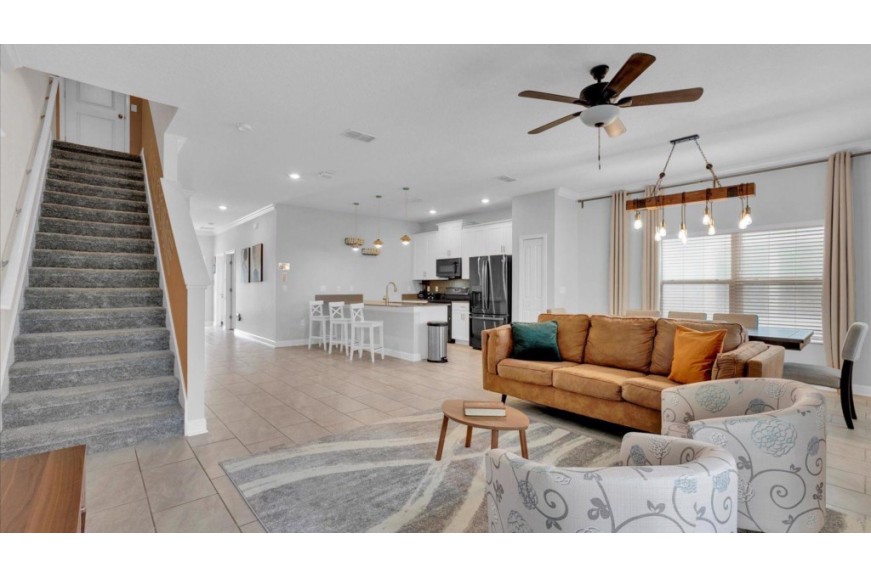 Storey Lake - Kissimmee, Florida is a brand new vacation community located just 4 miles from the magical world of Disney and just minutes to Universal, Sea World and the many water parks in the area. Central Florida is also home to some of the nation's top-rated golf courses and many are within a 10-minute drive of Storey Lake. The prime location lends itself to the premier shopping corridor including the famed Millennia, top restaurants and the world-renowned town of Celebration inspired by Disney. Storey Lake is also a 30-minute drive from the Orlando International Airport. The resort offers the best in family fun and is host to a wide variety of amenities and activities. This spacious 5 bedroom holiday villa can comfortably accommodate a large family or group of up to 10 guests.