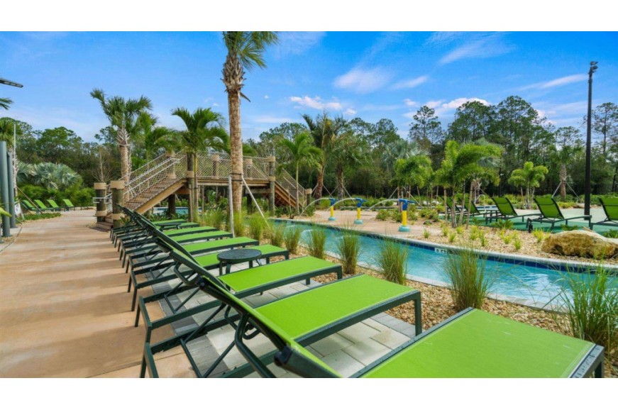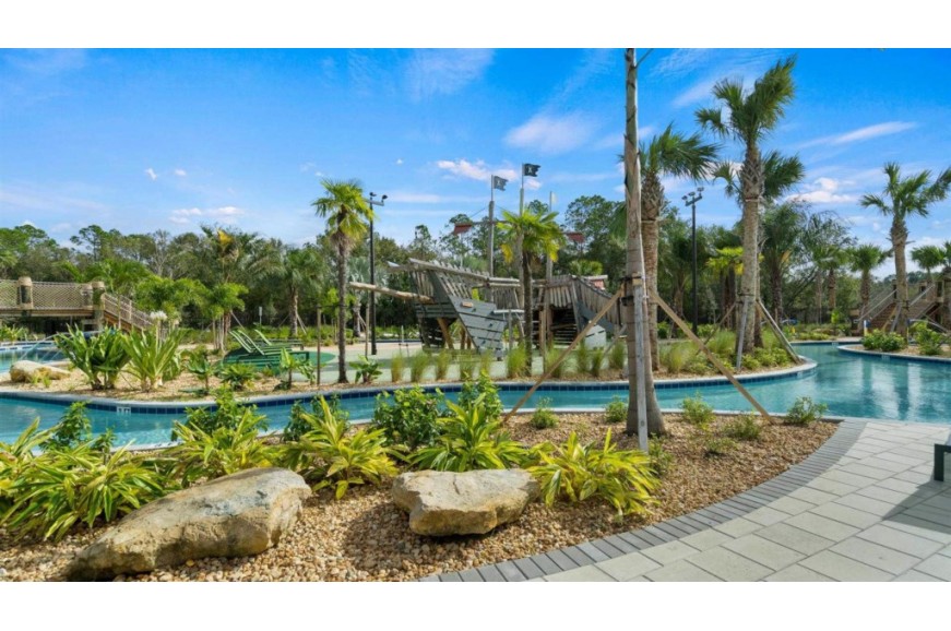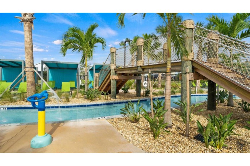 Designed for families and built for fun, Storey Lake Resort offers it all! Situated around a scenic lake with a variety of water amenities and activities including a tropical resort pool with a lazy river, two waterslides, and children's splash pad. Relax in the spa or sunbathe on the terrace and sand beach areas. Fishing, canoe & kayak rentals are available at the community dock. Enjoy a cold beverage or ice cream at the resort’s poolside café. Don’t forget to get in a game of mini-golf, volleyball or basketball. Escape the sun at the covered tiki bar or venture inside the resort’s clubhouse, which includes a guest lounge area, fitness center, and business center. Resort Disclaimer: Guests can use resort amenities, some with additional guest fees. We're not liable for closures or changes, and refunds won't be provided.