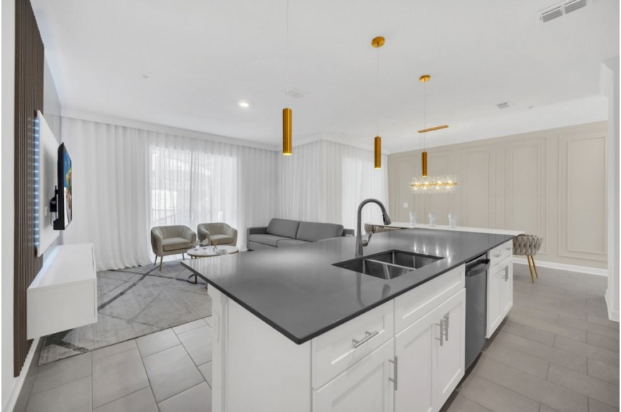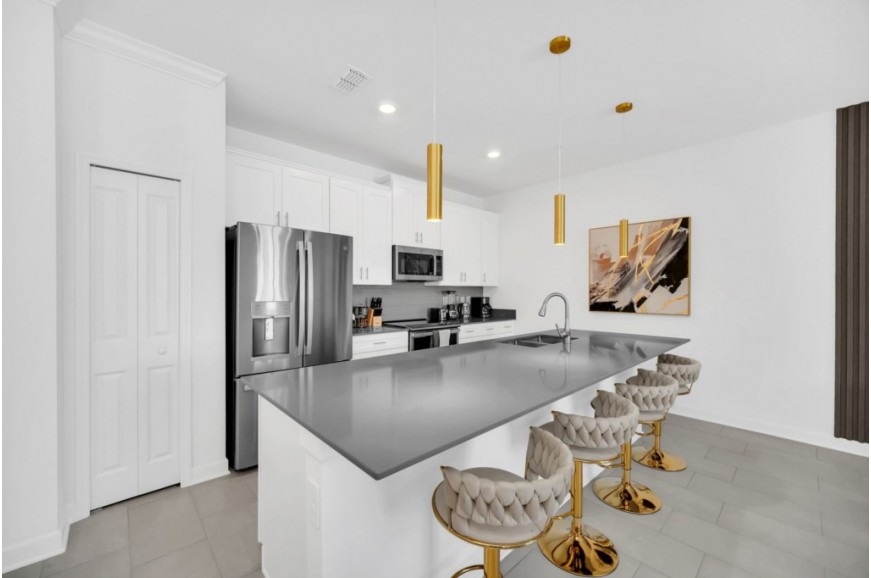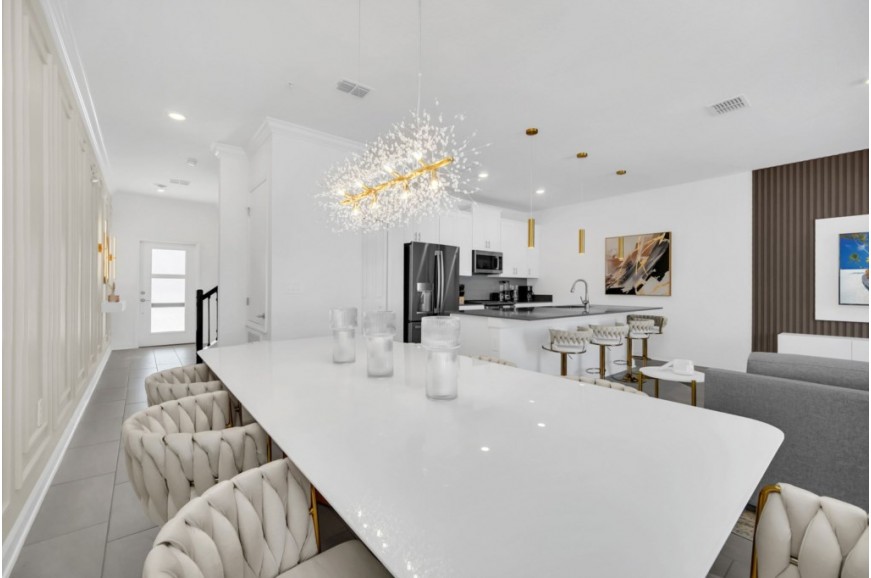 Storey Lake - Kissimmee, Florida is a brand new vacation community located just 4 miles from the magical world of Disney and just minutes to Universal, SeaWorld, and the many water parks in the area. Central Florida is also home to some of the nation's top-rated golf courses and many are within a 10-minute drive of Storey Lake. The prime location lends itself to the premier shopping corridor including the famed Millennia, top restaurants, and the world-renowned town of Celebration inspired by Disney. Storey Lake is also a 30-minute drive from the Orlando International Airport. The resort offers the best in family fun and is host to a wide variety of amenities and activities. This spacious 4-bedroom townhome can comfortably accommodate a large family or group of up to 8 guests.