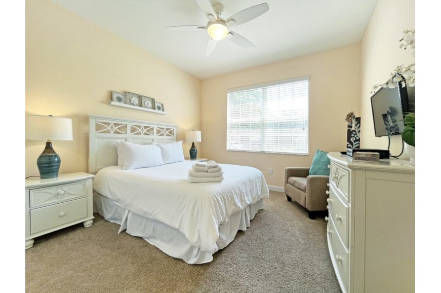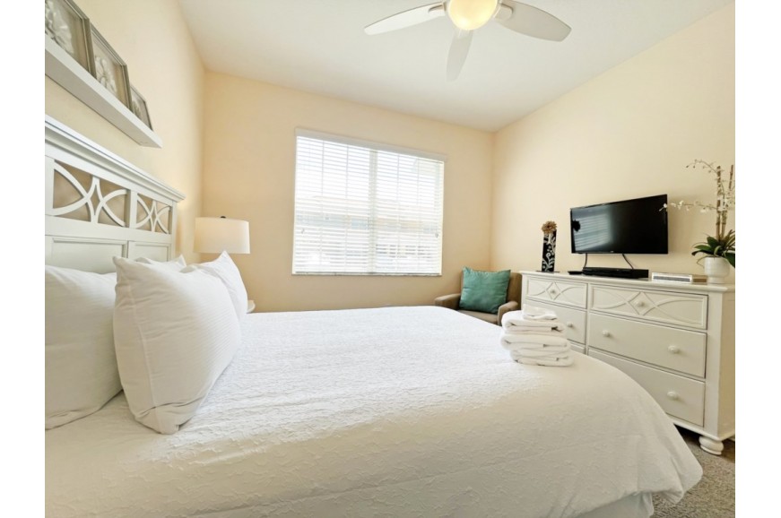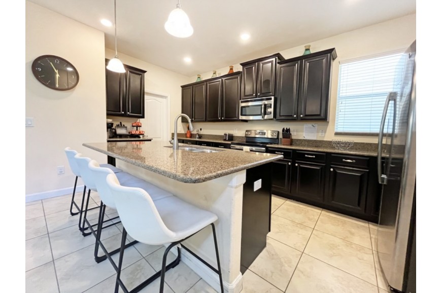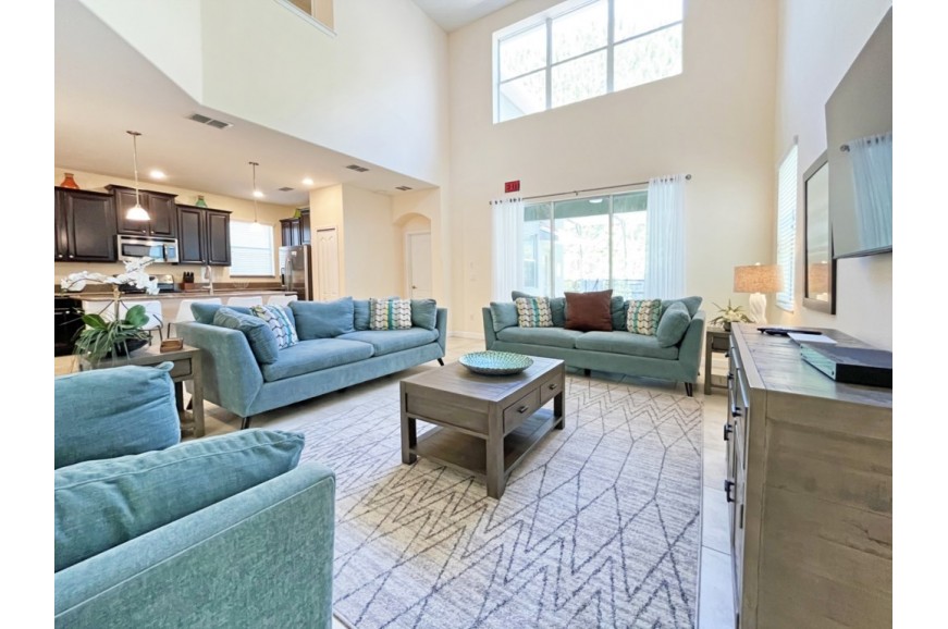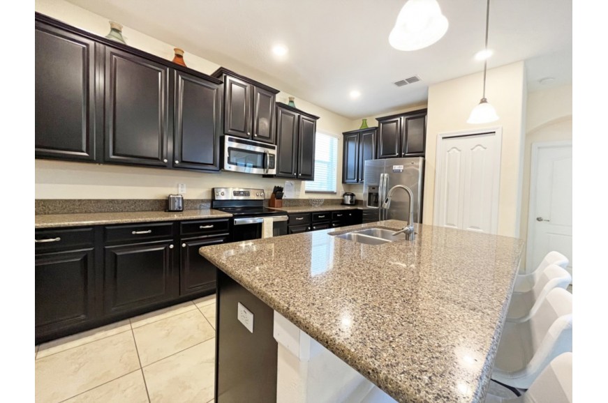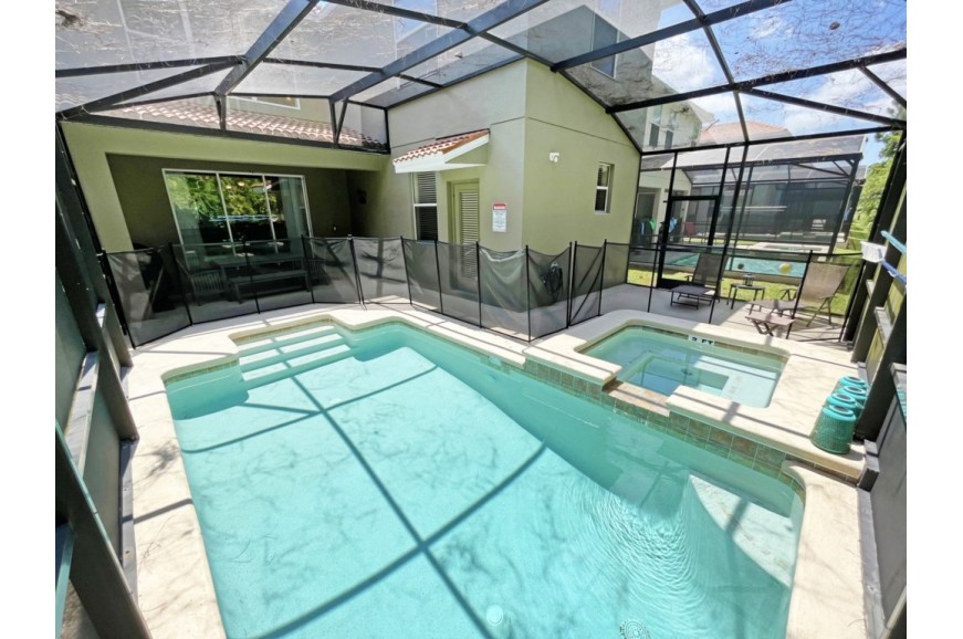 Paradise Palms - Kissimmee, Florida is an upscale gated community located just 5 miles from Walt Disney World. This luxury resort sits nestled just off Hwy 192 in Kissimmee, Florida, and is one of the most desired resorts in the Orlando area. During your stay, you will enjoy this well-appointed home that has been designed and decorated to provide you and your family with an abundance of luxury amenities and leaves you well-equipped to vacation with all the usual items you would expect to find at home. Paradise Palms Resort is only a 25-minute drive from the Orlando International Airport and is situated central to all of Orlando’s famous attractions. The resort's amenities include a gated community, a water park with an Olympic-size swimming Pool, fountains, waterslides, a spa, a separate toddler pool, tennis courts, volleyball, and a children’s park and clubhouse. The Clubhouse has pool tables, ping-pong tables, a video games area, a sundry shop, a fitness room with top-of-the-line fitness equipment, and a high-definition surround sound movie theater. There are other outdoor recreational activities all surrounding the double Olympic-size heated swimming pool creating a relaxing, playful atmosphere for the entire family! Paradise Palms has all the amenities of a five-star hotel or resort but with the comfort, convenience, and privacy of a private home. This spacious 5-bedroom holiday villa can comfortably accommodate a larger family or group of up to 10 people.