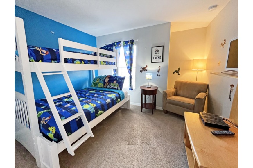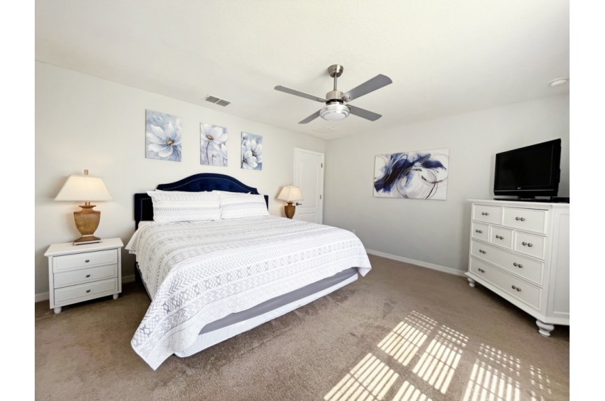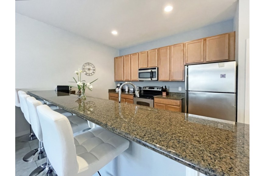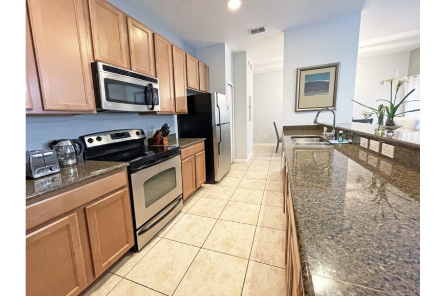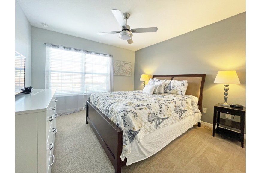 Paradise Palms - Kissimmee, Florida is an upscale gated community located just 5 miles from Walt Disney World. This luxury resort sits nestled just off Hwy 192 in Kissimmee, Florida, and is one of the most desired resorts in the Orlando area. During your stay, you will enjoy this well-appointed home that has been designed and decorated to provide you and your family with an abundance of luxury amenities and leaves you well-equipped to vacation with all the usual items you would expect to find at home. Paradise Palms Resort is only a 25-minute drive from the Orlando International Airport and is situated central to all of Orlando’s famous attractions. The resort's amenities include a gated community, a water park with an Olympic-size swimming Pool, fountains, waterslides, a spa, a separate toddler pool, tennis courts, volleyball, and a children’s park and clubhouse. The Clubhouse has pool tables, ping-pong tables, a video games area, a sundry shop, a fitness room with top-of-the-line fitness equipment, and a high-definition surround sound movie theater. There are other outdoor recreational activities all surrounding the double Olympic-size heated swimming pool creating a relaxing, playful atmosphere for the entire family! Paradise Palms has all the amenities of a five-star hotel or resort but with the comfort, convenience, and privacy of a private home. This spacious 4-bedroom holiday villa can comfortably accommodate a larger family or group of up to 8 people.