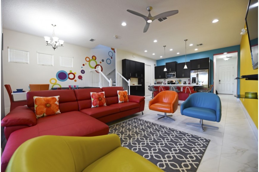 The Enclaves at Festival, Davenport, Florida is a charming and family-friendly community located just 8 miles from Walt Disney World. This family-oriented resort sits nestled just off US 27 in Davenport, Florida, and is one of the most desired tourist areas in the Orlando area. During your stay, you will enjoy this well-appointed villa that has been designed and decorated to provide you and your family with an abundance of amenities and leaves you well-equipped to vacation with all the usual items you would expect to find at home. The Enclaves at Festival is only a 30-minute drive from the Orlando International Airport and is situated central to all of Orlando’s famous attractions. The resort's amenities include a gated community, a large swimming pavilion with a children's splash playground, a volleyball court, and a putt-putt course. The Clubhouse offers a fitness center and arcade. The Enclaves at Festival has all the amenities of a five-star hotel or resort but with the comfort, convenience, and privacy of a private home. This spacious 5-bedroom holiday villa can comfortably accommodate a larger family or group of up to 10 people.