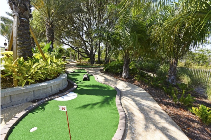 Located within the resort community, Champions Gate Golf Club features two premier 18-hole championship golf courses designed by accomplished architect and golfer, Greg Norman. The International Course is designed around scenic natural wetlands and features long carries, deep pot bunkers, tall grass-topped dunes, and large undulating greens. The National Course is designed in the "Florida golf resort" style, featuring naturally rolling central Florida plains, spring-fed lakes, bunker-protected fairways and greens, and small, challenging putting surfaces.
