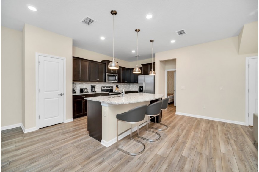 Windsor Island - Davenport, Florida is an upscale gated community located just 20-25 minutes from Walt Disney World. This luxury home sits nestled just outside of Orlando, Florida, and has quickly become one of the most desired locations in the Orlando area. During your stay, you will enjoy this well-appointed home that has been designed and decorated to provide you and your family an abundance of luxury amenities and leaves you well equipped to vacation with all the usual items you would expect to find at home. Windsor Island is only a 30-minute drive from the Orlando International Airport and is situated central to all of Orlando’s famous attractions. This spacious 5 bedroom holiday villa can comfortably accommodate a larger family or group of up to 10 people.
